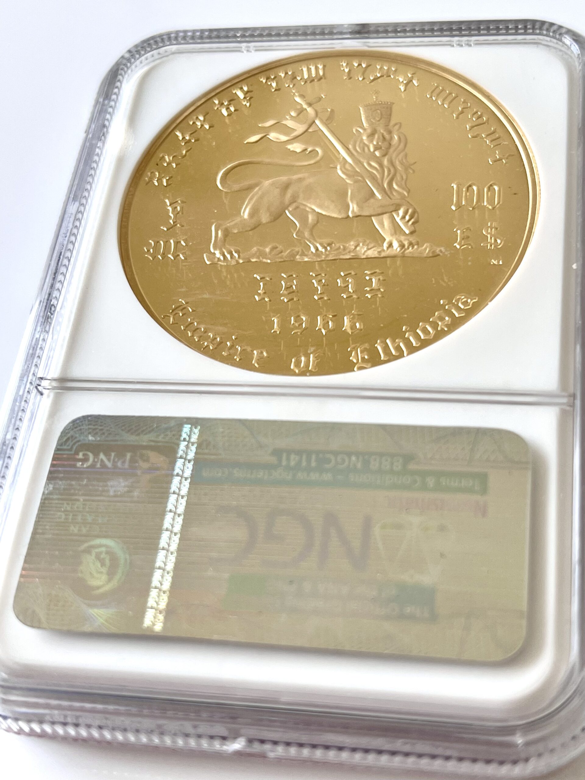 Dies ist die 100 Dollars Goldmünze aus dem Jahr 1966 aus Äthiopien.