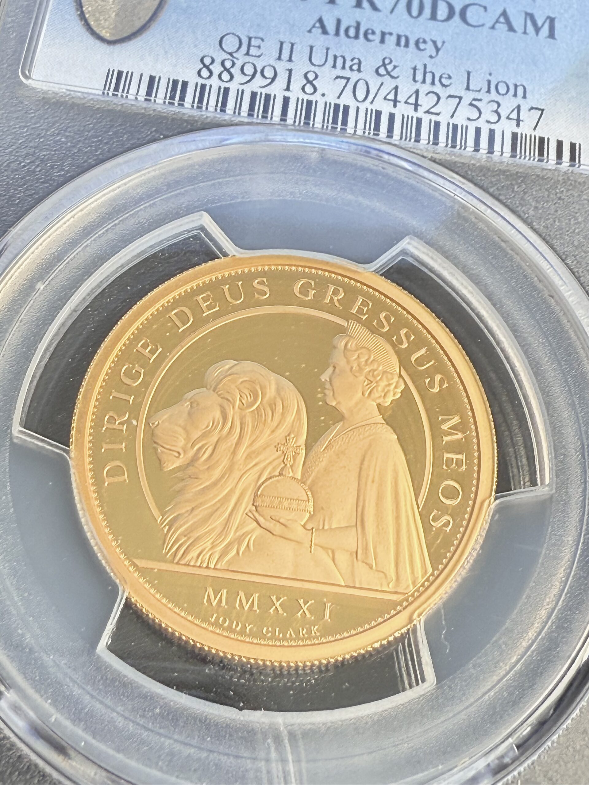 Alderney – 2021 – 100 Pfund – Una and The Lion – 95. Geburtstag Königin Elisabeth II. – PCGS PR70 DCAM – COA 347