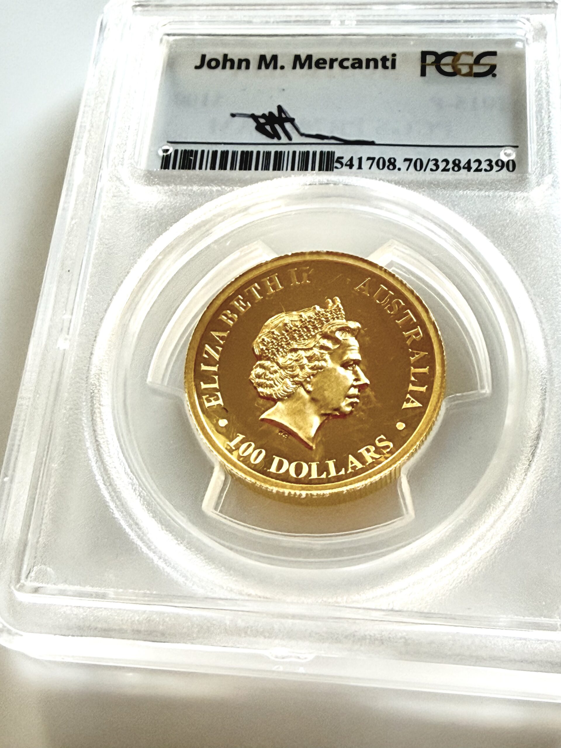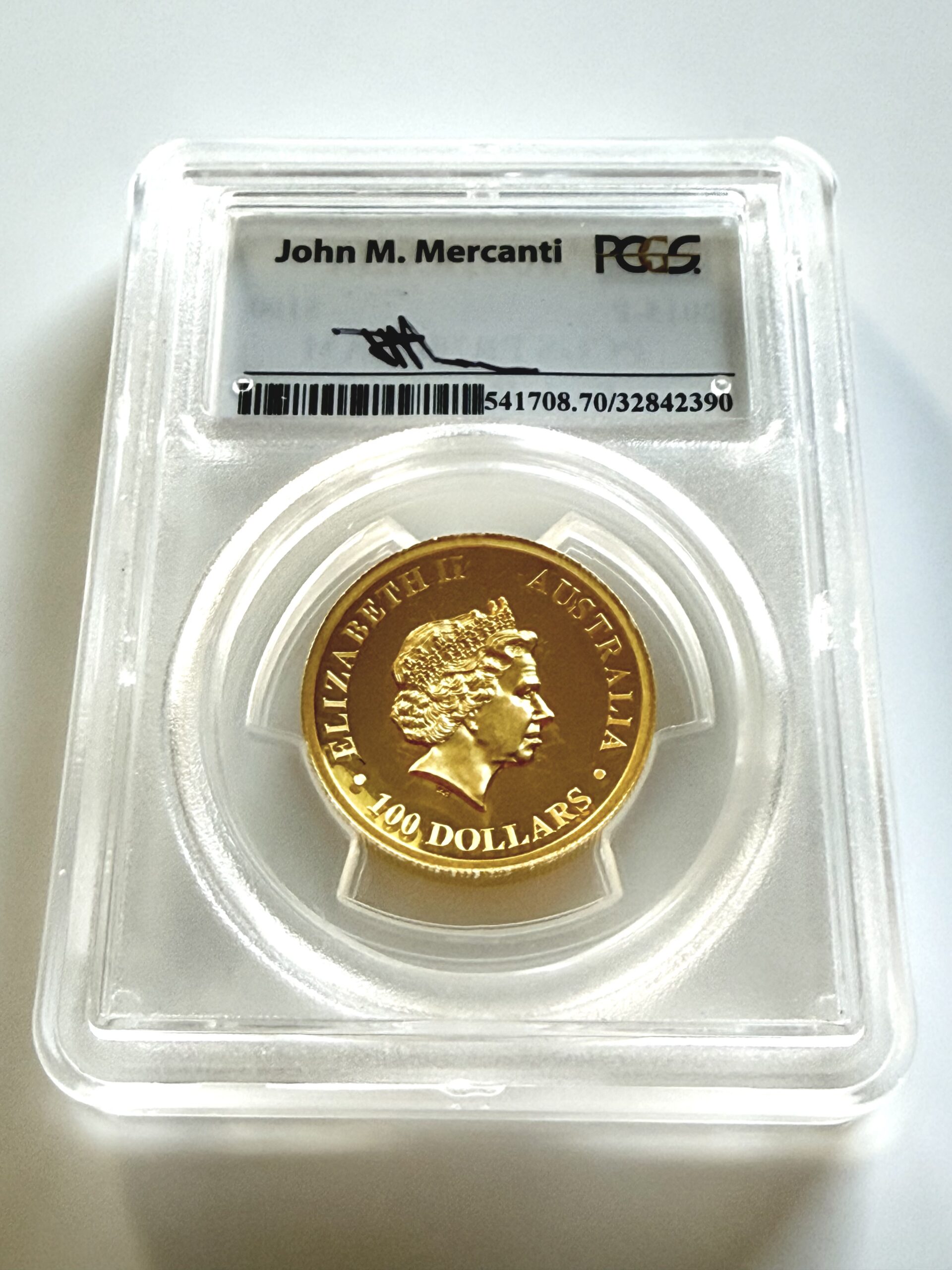 Die Gold Proof High Relief Ausgaben des Wedge Tailed Eagle werden in einer kleinen Auflage für Sammler ausgegeben. Das hier angebotene Exemplar ist bei PCGS mit PR70 Deep Cameo bewertet und trägt das Mercanti Signed Label, das die Verbindung zum Designer des Motivs zusätzlich hervorhebt. Dadurch eignet sich die Münze besonders für Sammler, die die Arbeiten von John Mercanti oder moderne australische Goldserien gezielt auf höchstem Qualitätsniveau zusammenstellen.