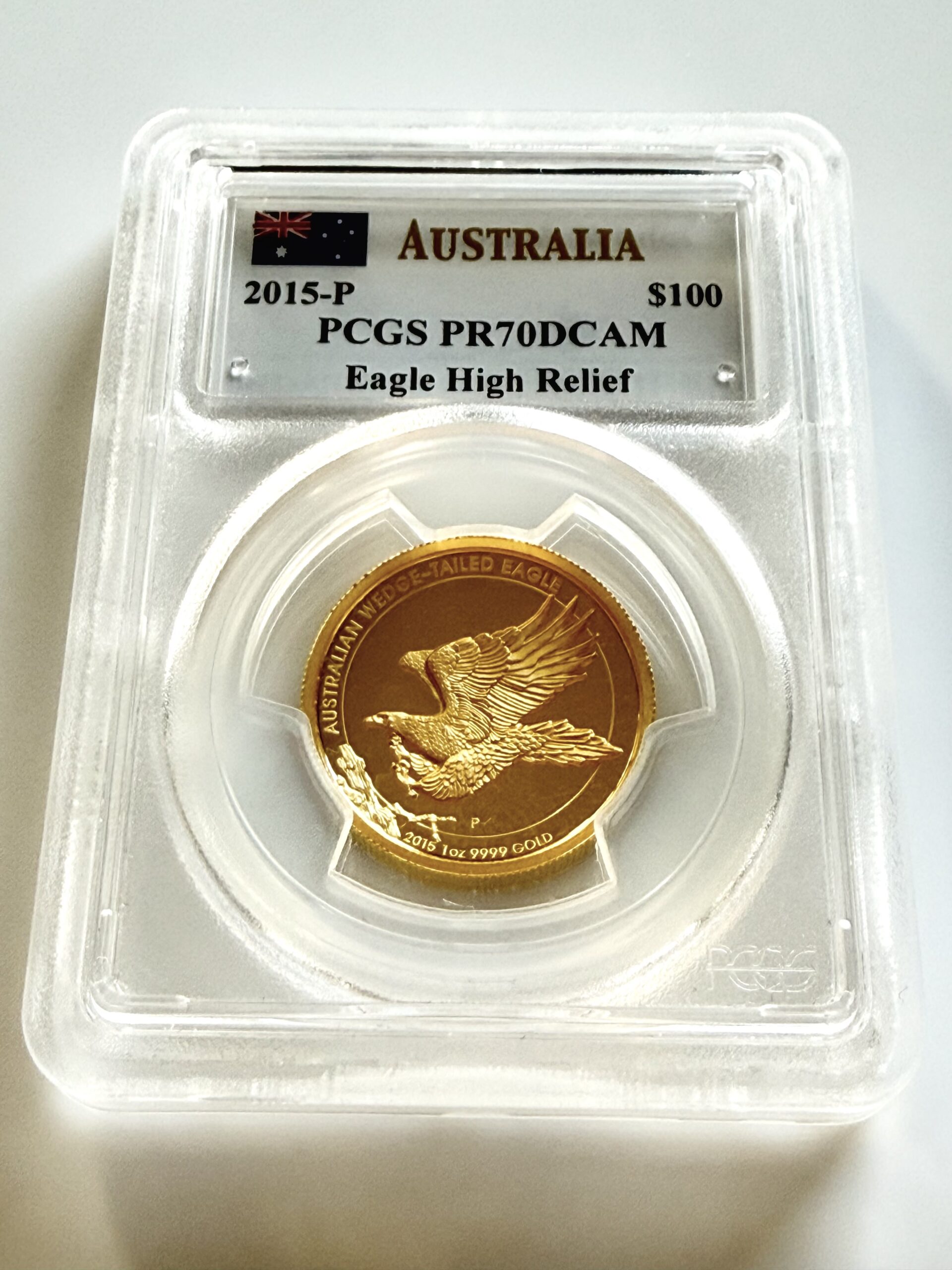 Australien – 2015 – 100 Dollar – Wedge Tailed Eagle – Gold 1 oz Proof High Relief – PCGS PR70 DCAM – Mercanti Signed Label