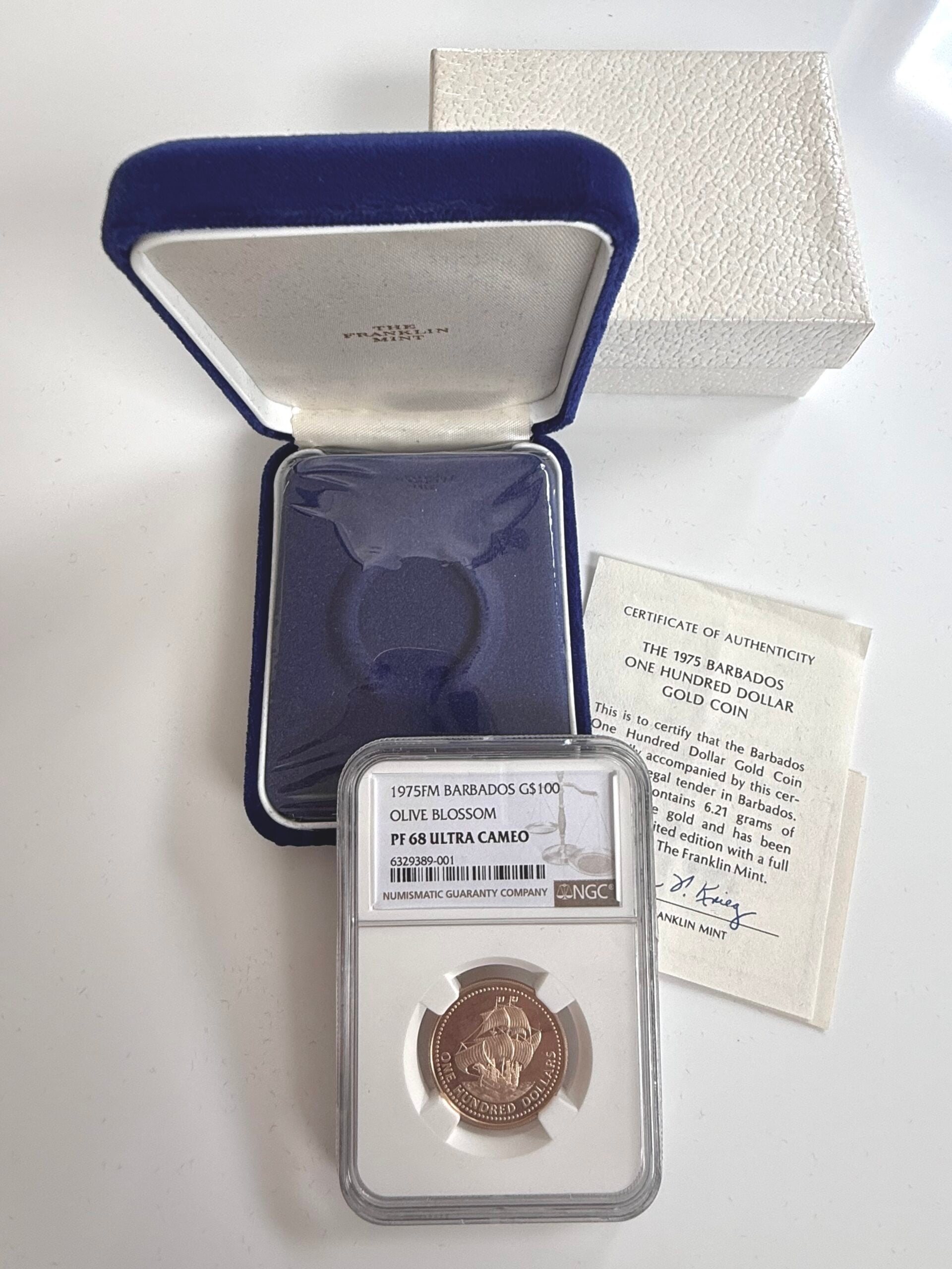 Barbados – 1975 – 100 Dollars – Olive Blossom – Gold – NGC PF68 Ultra Cameo