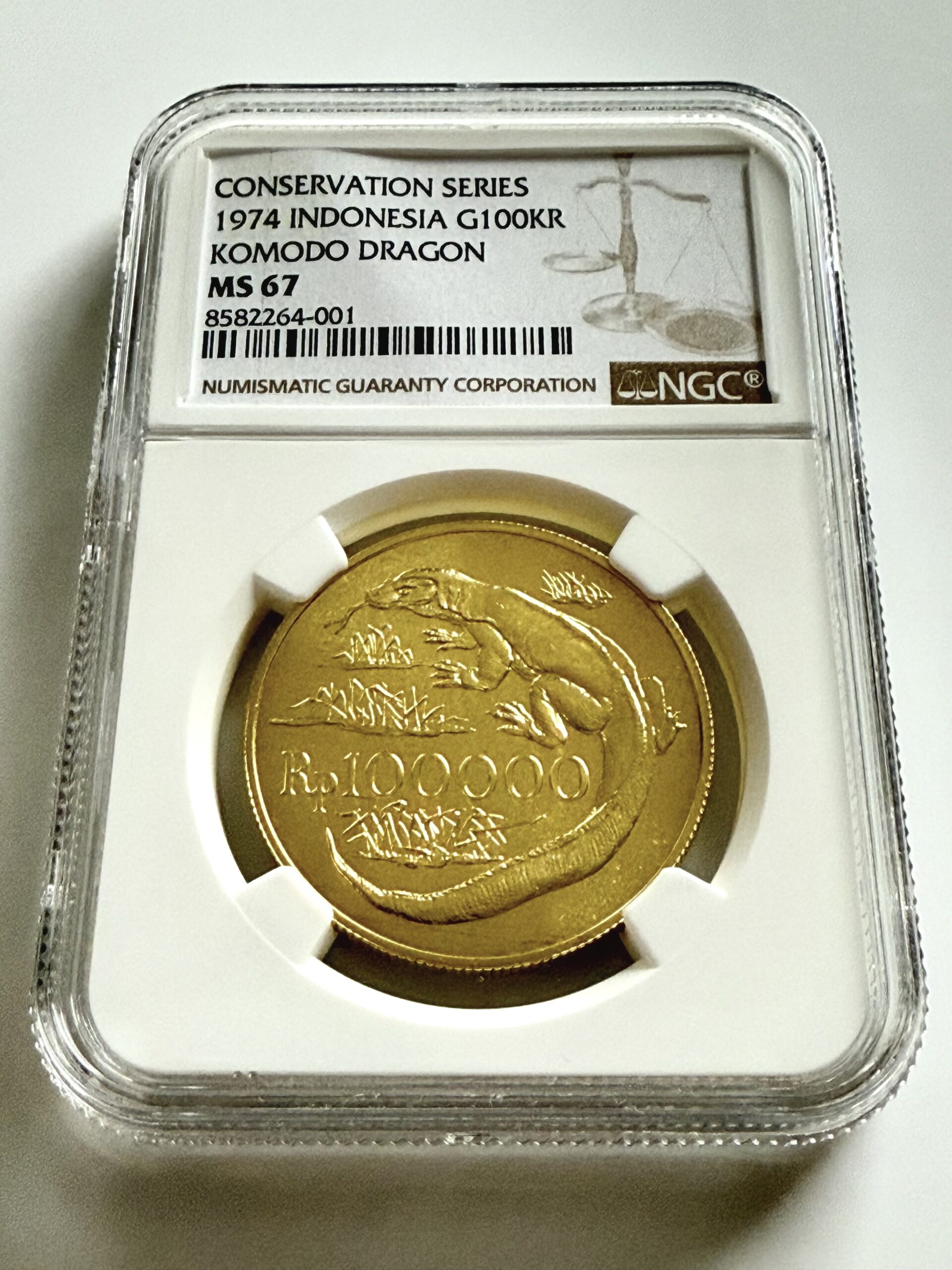 Indonesien – 1974 – 100000 Rupiah – Komodo Dragon – Gold – NGC MS67 – Zertifikat 8582264-001