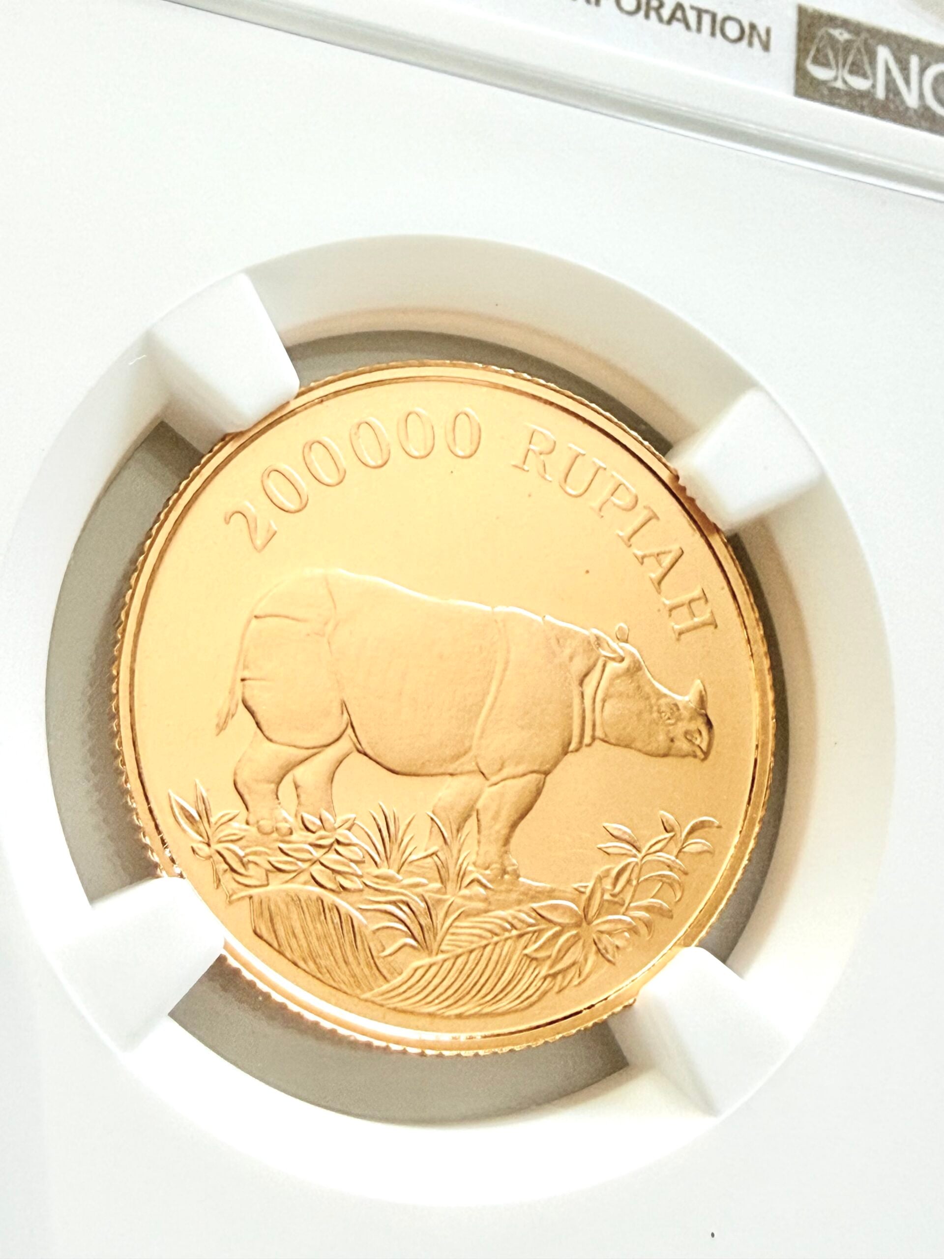 Indonesien – 1987 – 200000 Rupiah – Javan Rhinoceros – Gold – Proof – NGC PF69 Ultra Cameo – COA-007