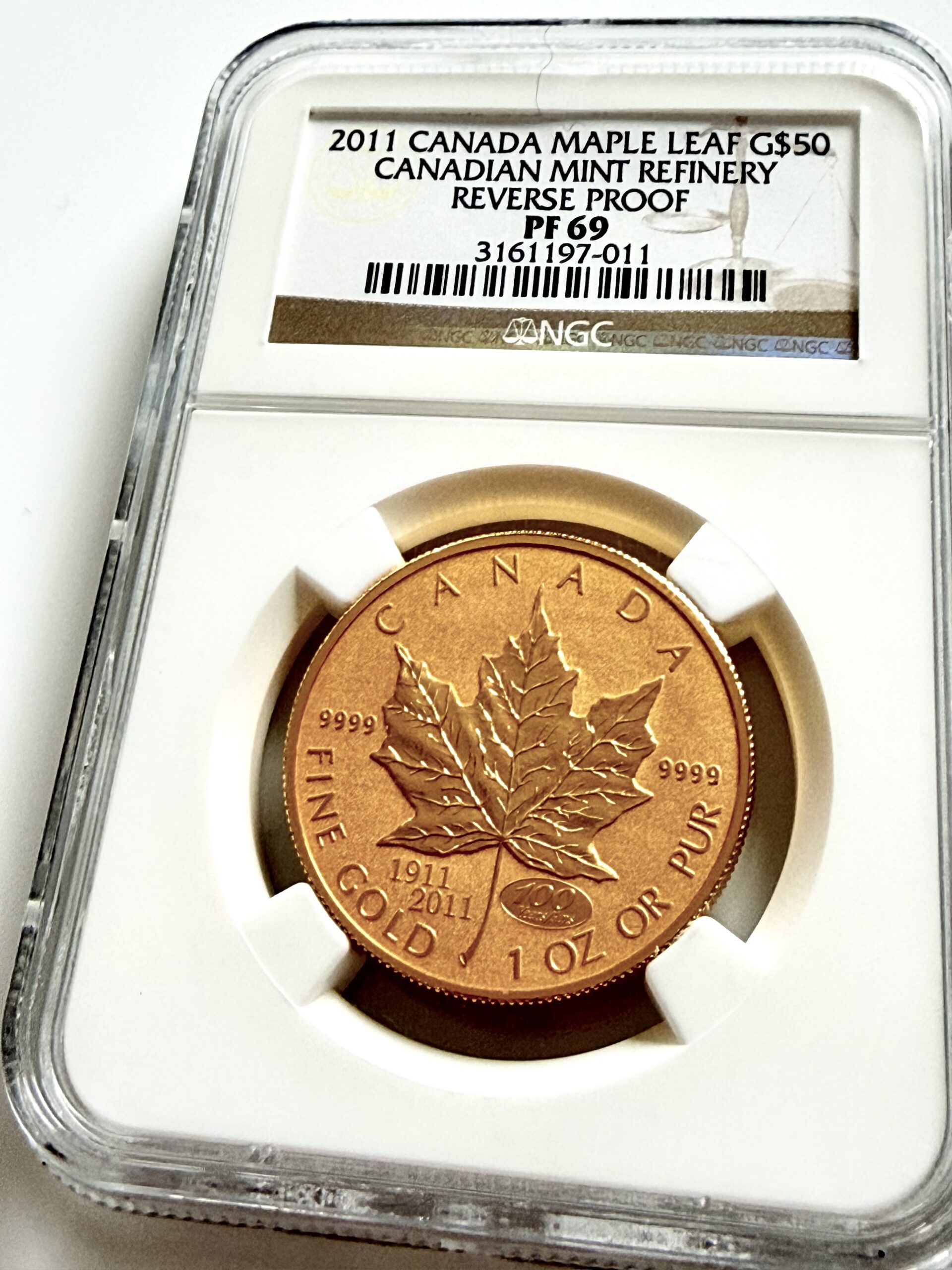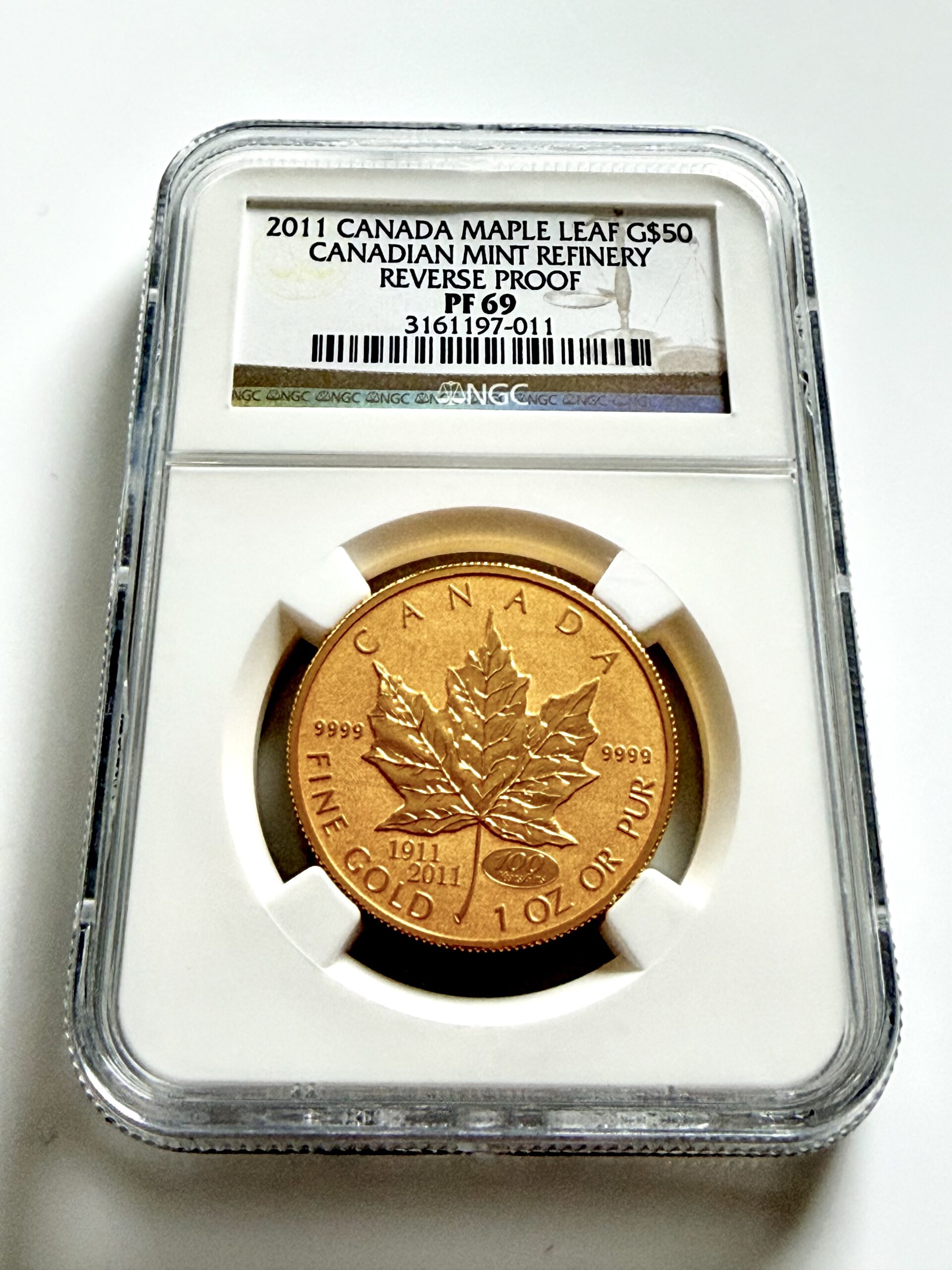 Kanada – 2011 – 50 Dollars – Maple Leaf – Canadian Mint Refinery 100 Years Privy Mark – Reverse Proof – NGC PF69 – Cert 3161197-011