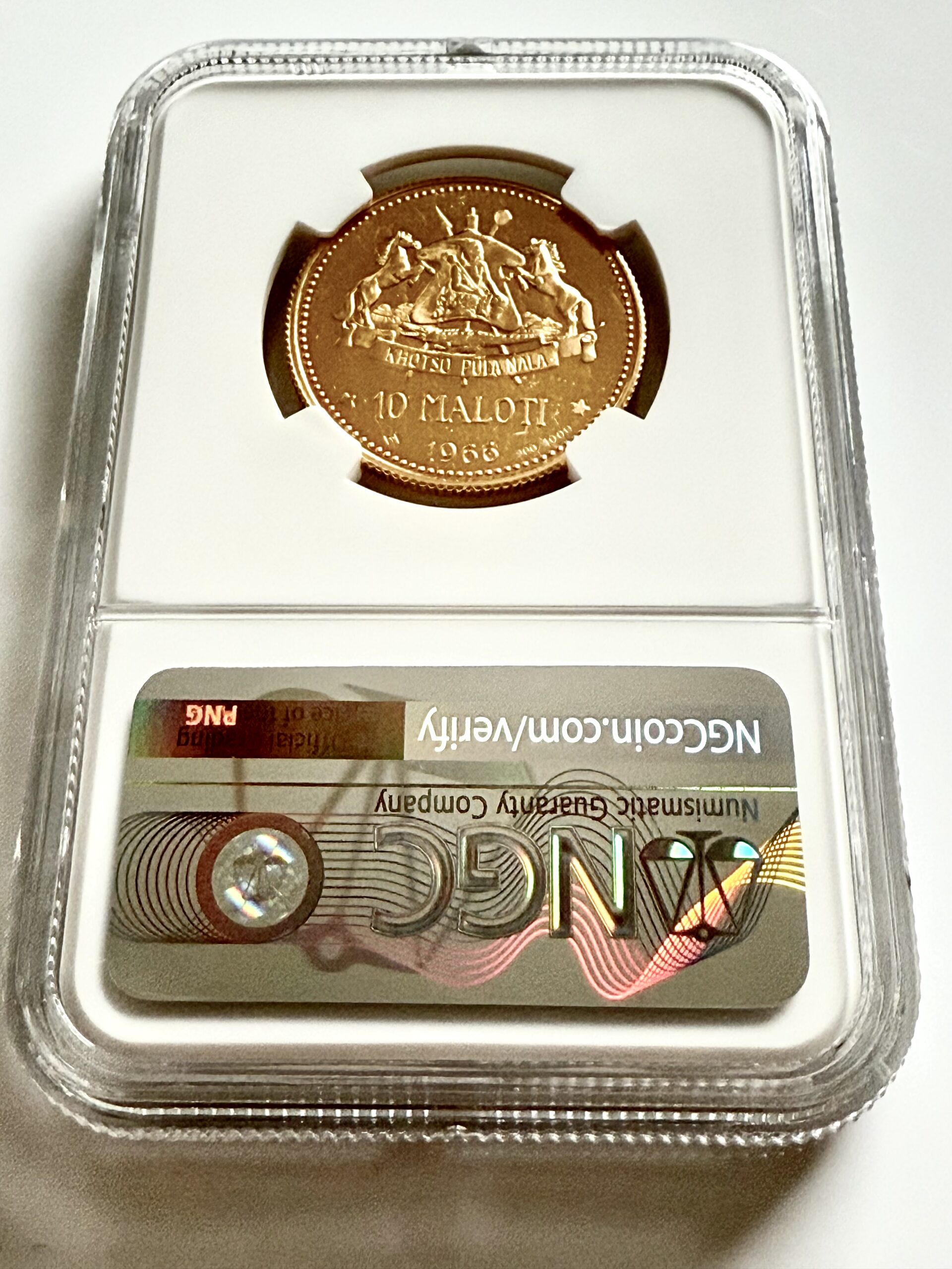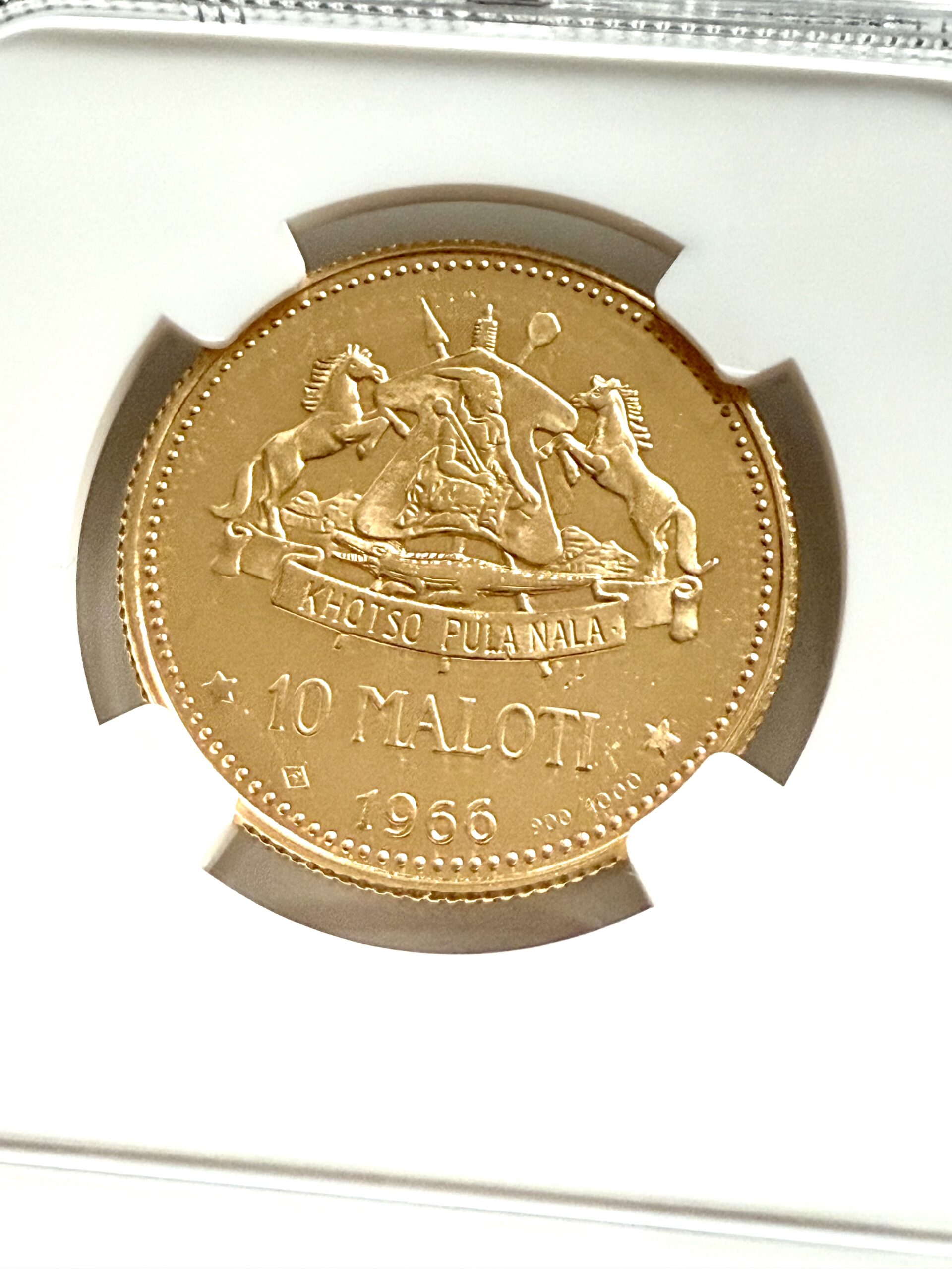 Lesotho – 1966 – 10 Maloti – Moshoeshoe II – Gold – Essai – NGC PF63 UCAM – Zertifikat 8582264-007