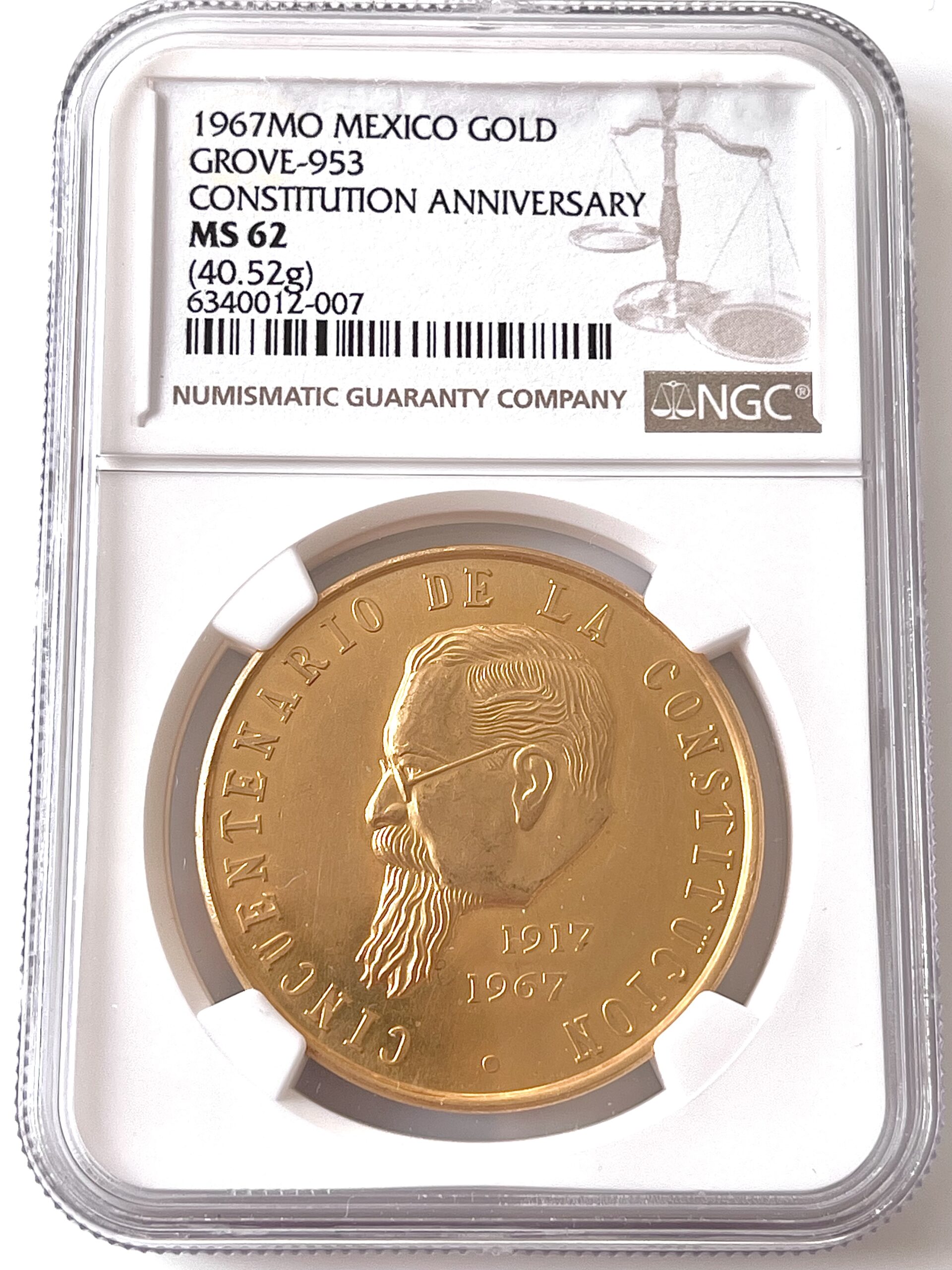 Mexiko 1967 – 50 Jahre Verfassung – Goldmedaille – NGC MS62 (Grove-953)