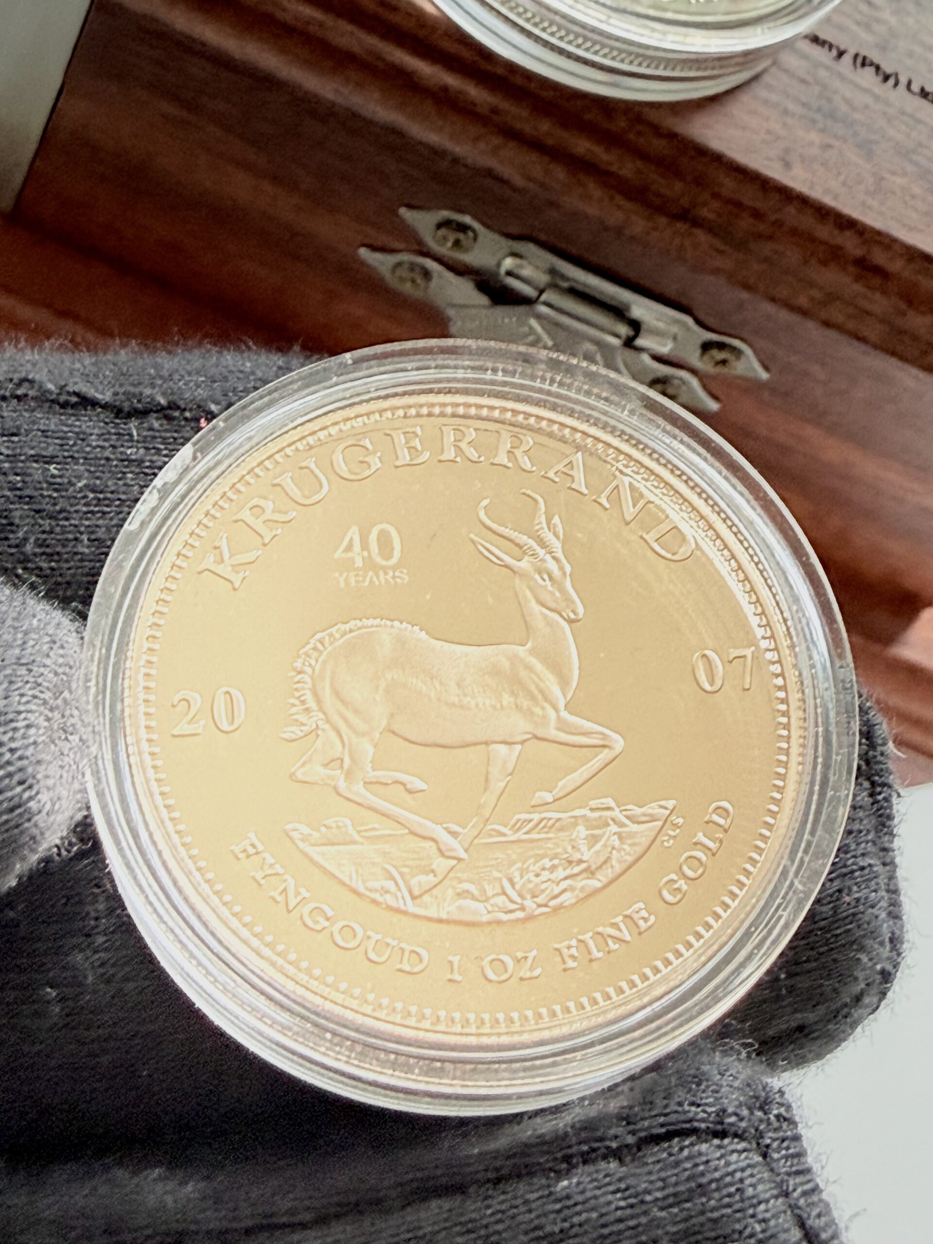 Südafrika – 2007 – Krügerrand – Launch Set – 40 Jahre Jubiläum Privy Mark – 1oz Proof Gold – Holzbox – COA