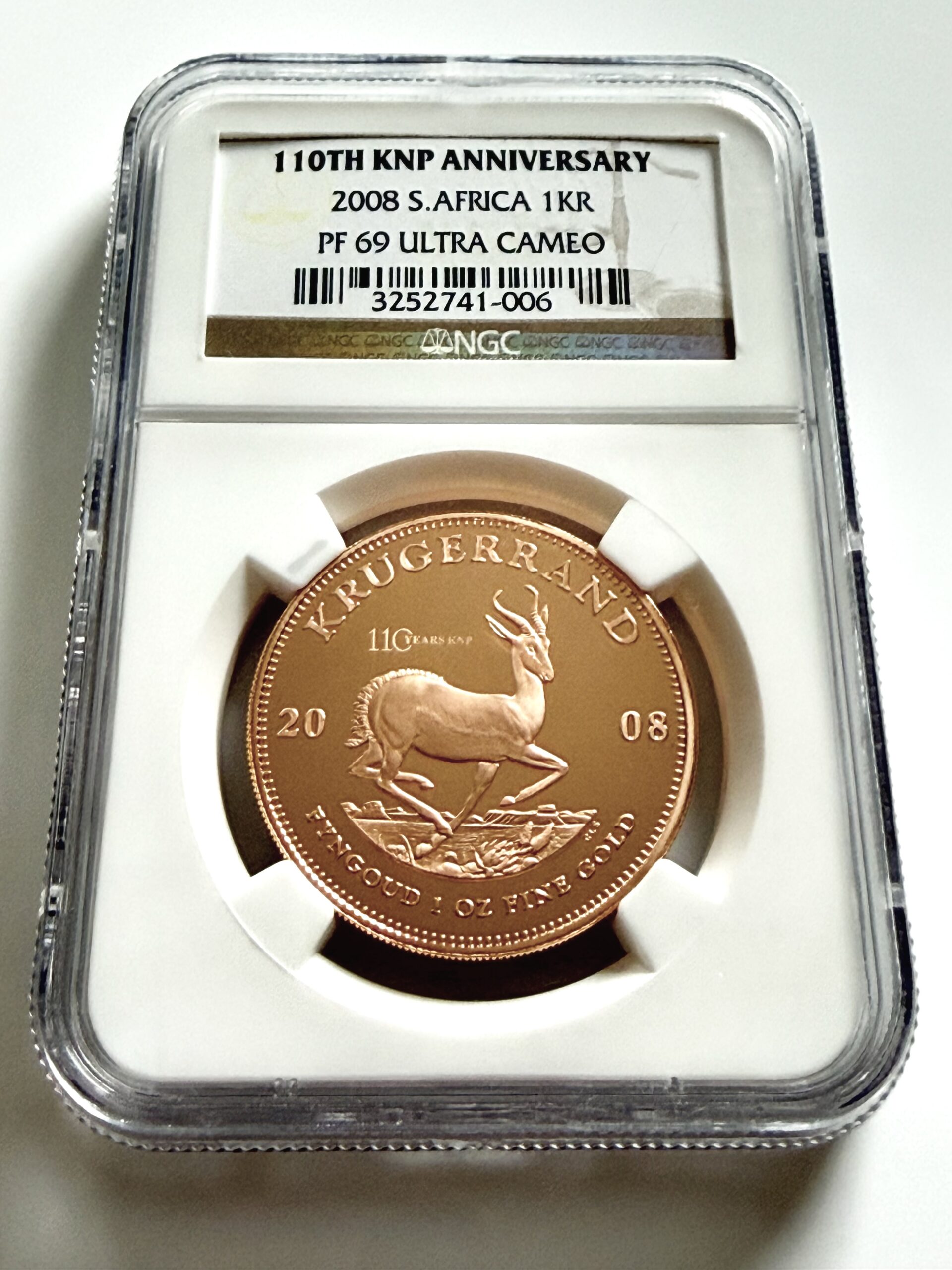Südafrika – 2008 – Krügerrand 1 oz – Springbock KNP Privy Mark – Gold – Proof – PF69 Ultra Cameo – NGC Cert 3252741-006