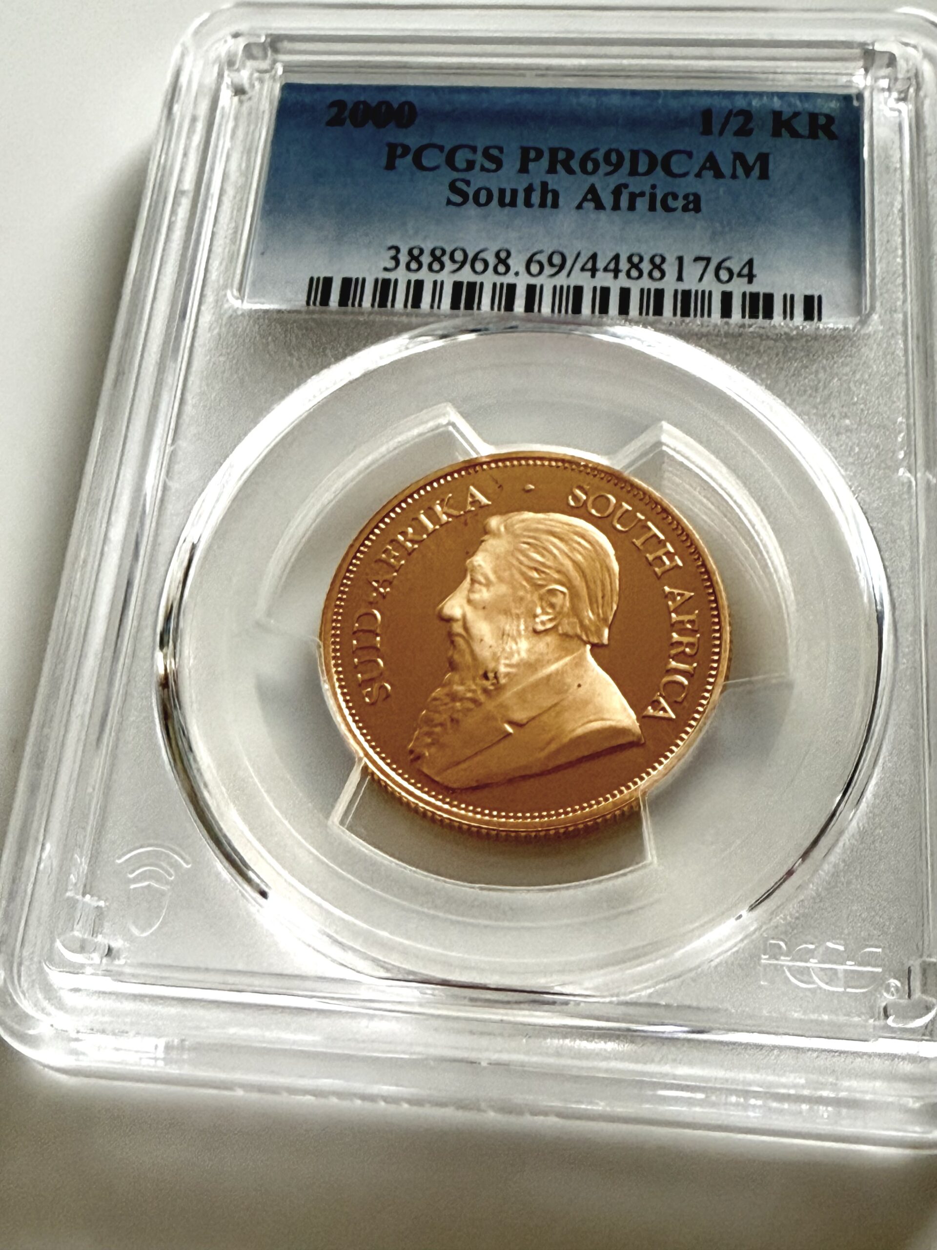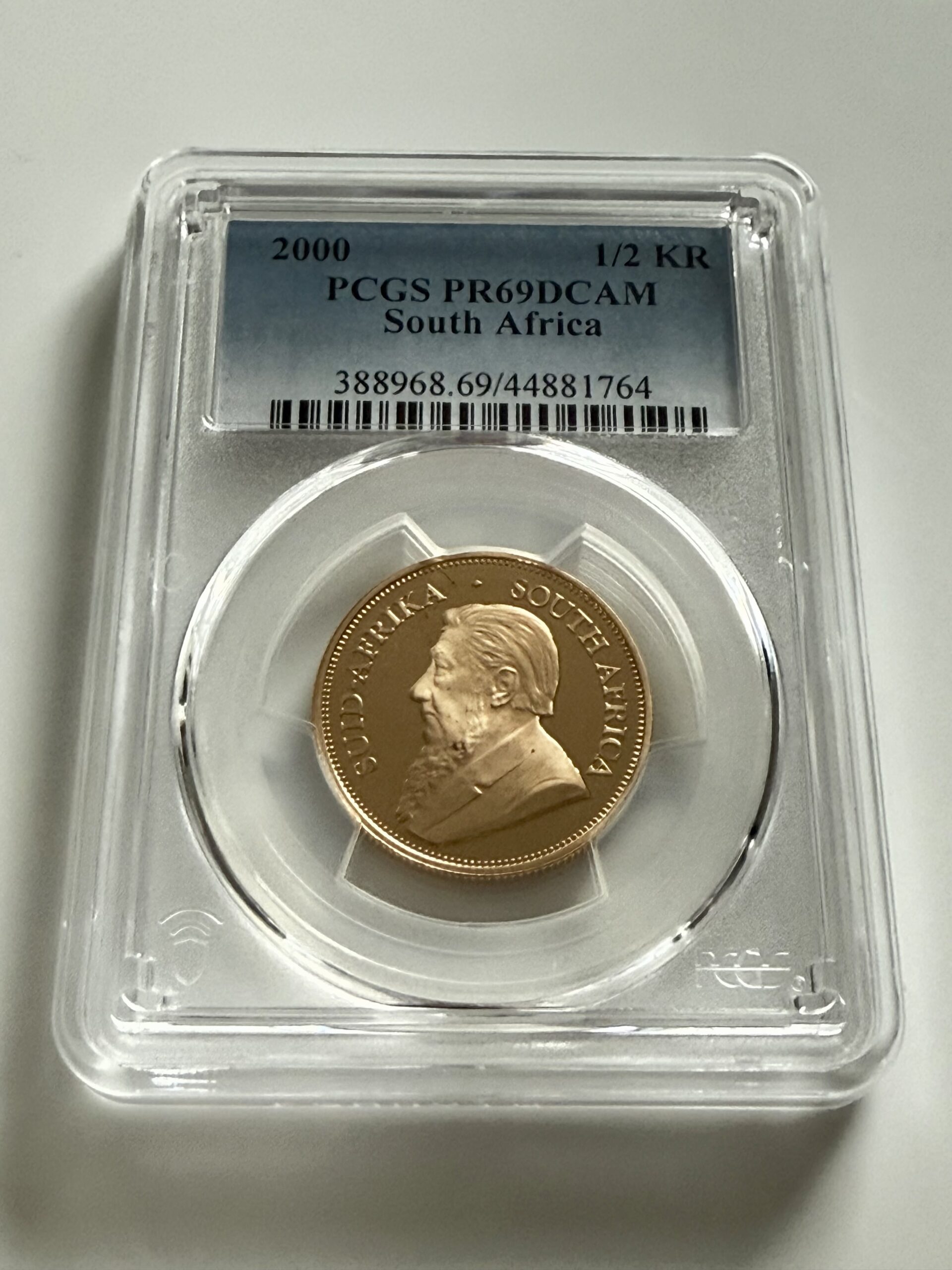 Dadurch eignet sich dieser 1/2 oz Krügerrand 2000 in PCGS PR69 DCAM besonders für Sammler, die innerhalb der Krügerrand Serie nach bestimmten Jahrgängen und Erhaltungen strukturieren und gezielt Proofausgaben in hoher Qualität suchen.