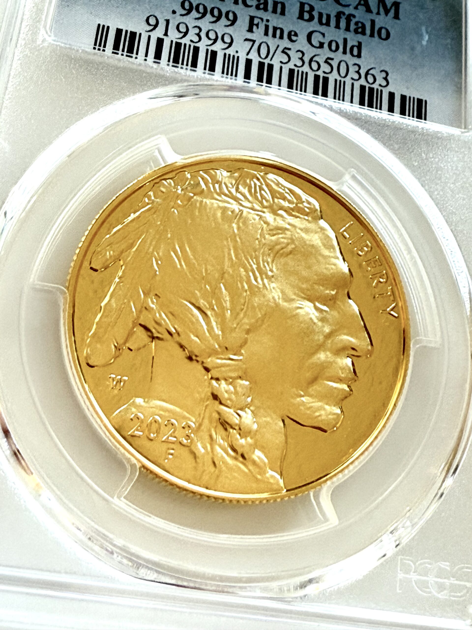 Die American Buffalo Goldmünze des Jahrgangs 2023 wird aus reinem .9999 Feingold geprägt und gilt als eine der repräsentativsten Prägungen der United States Mint. Das hier angebotene Exemplar wurde von PCGS mit der Höchstnote PR70 Deep Cameo (DCAM) zertifiziert – Top Pop mit einer aktuellen Population von 1.615 Stücken.
