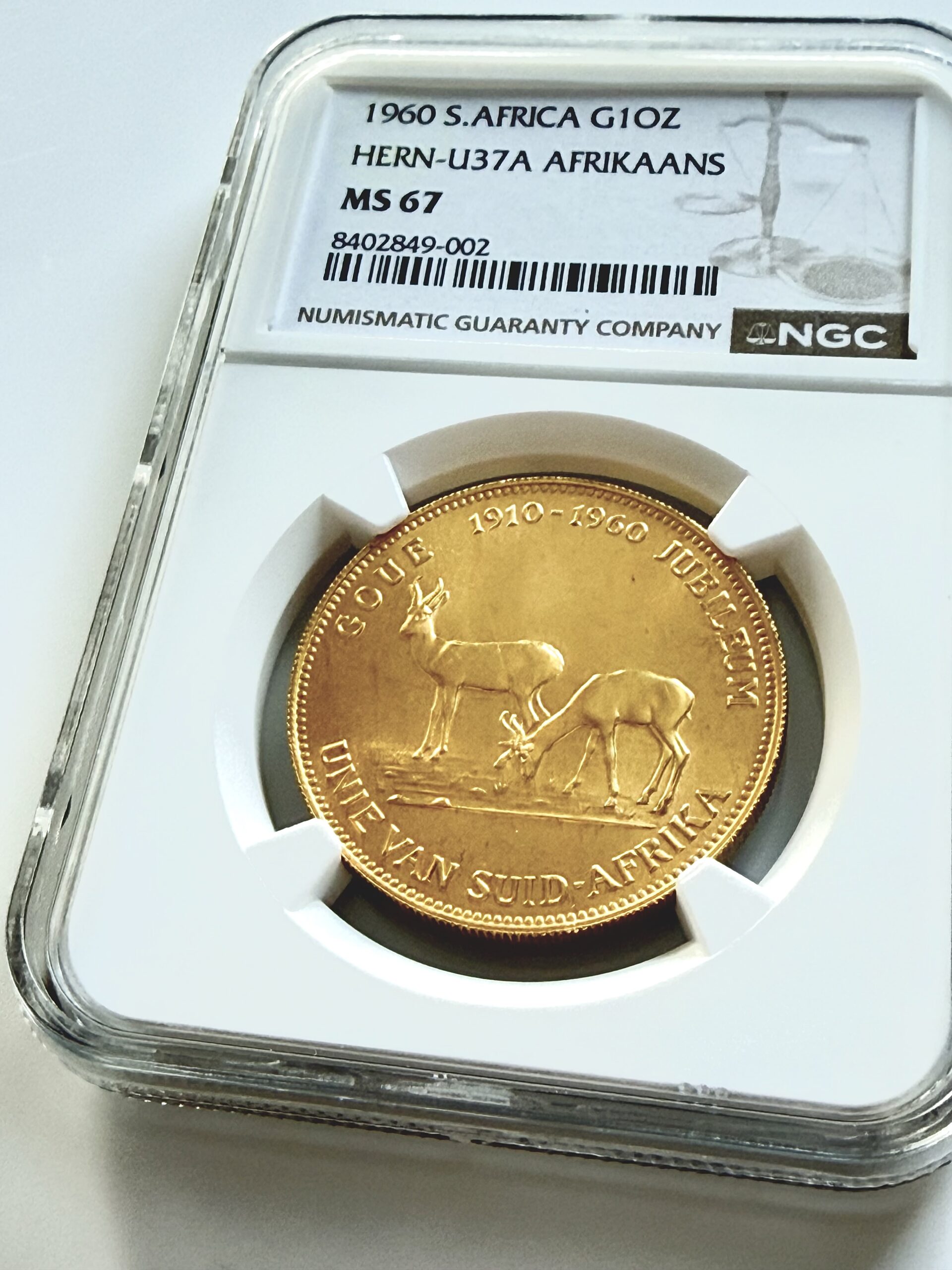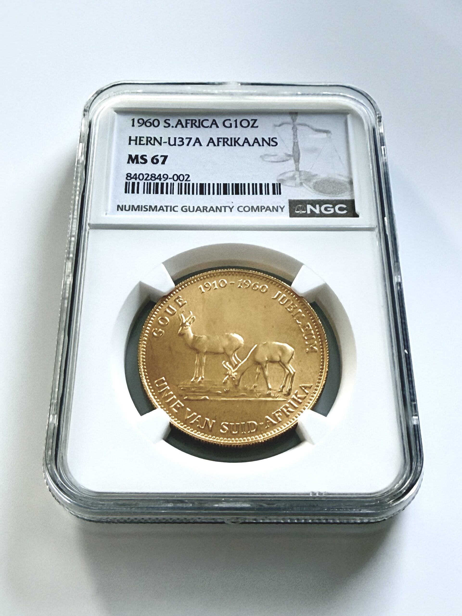 South Africa – 1960 – 1oz – Chamber of Mines Golden Jubilee – Gold – Brilliant Uncirculated – NGC MS67 – Cert 8402849-002