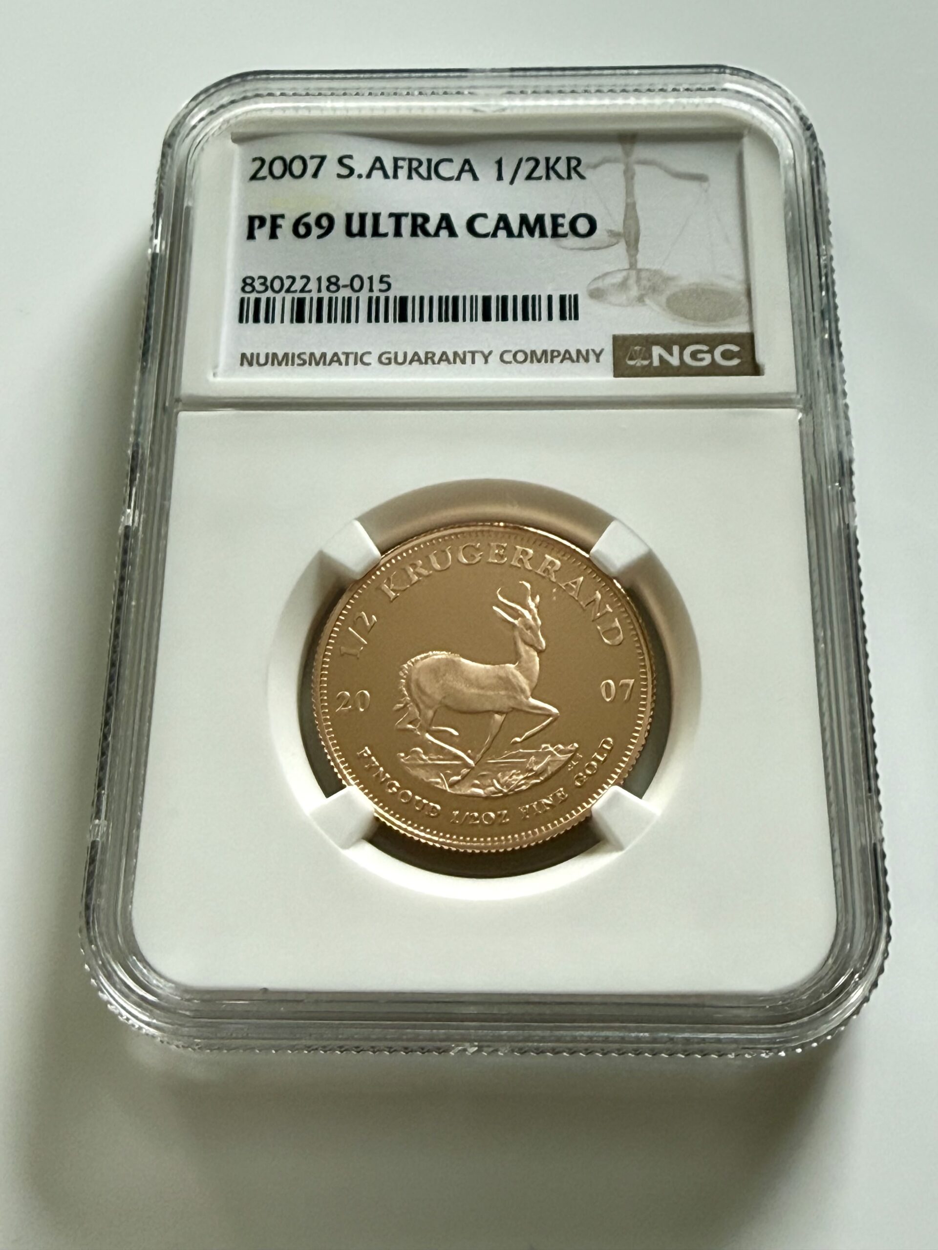 South Africa – 2007 – 1/2 Krugerrand – Springbok – Gold – Proof – PF69 Ultra Cameo – NGC Cert 8302218-015