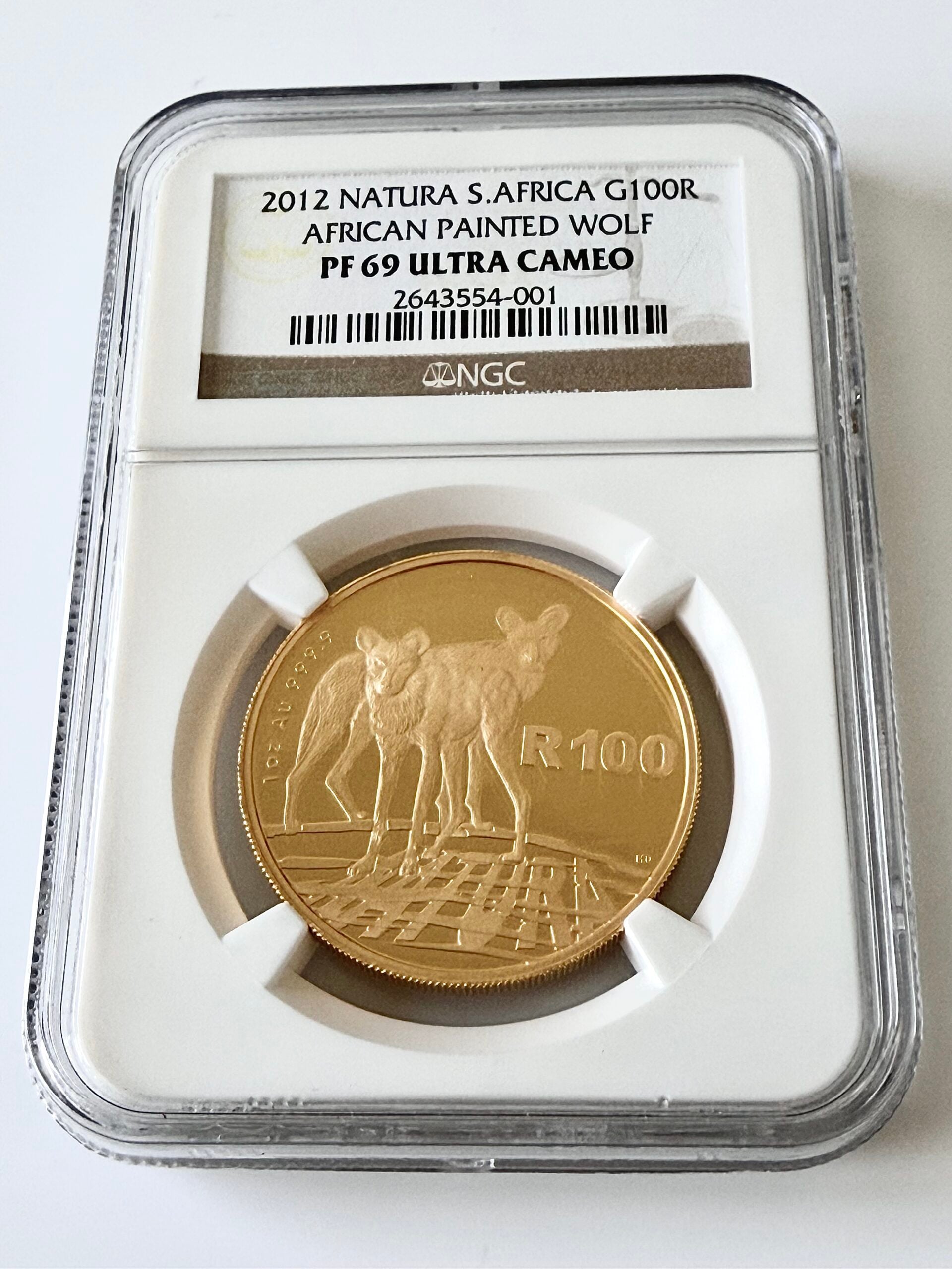 South Africa – 2012 – Natura – African Painted Wolf – 100 Rand – 1oz Gold Proof – NGC PF69 UCAM