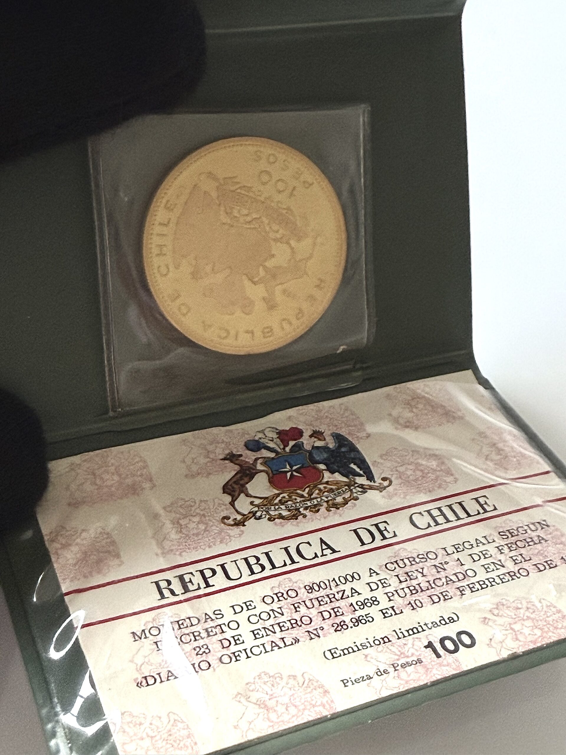 Chile – 1968 – 100 Pesos – 150 Aniversario de Acuñación Nacional – con estuche y certificado