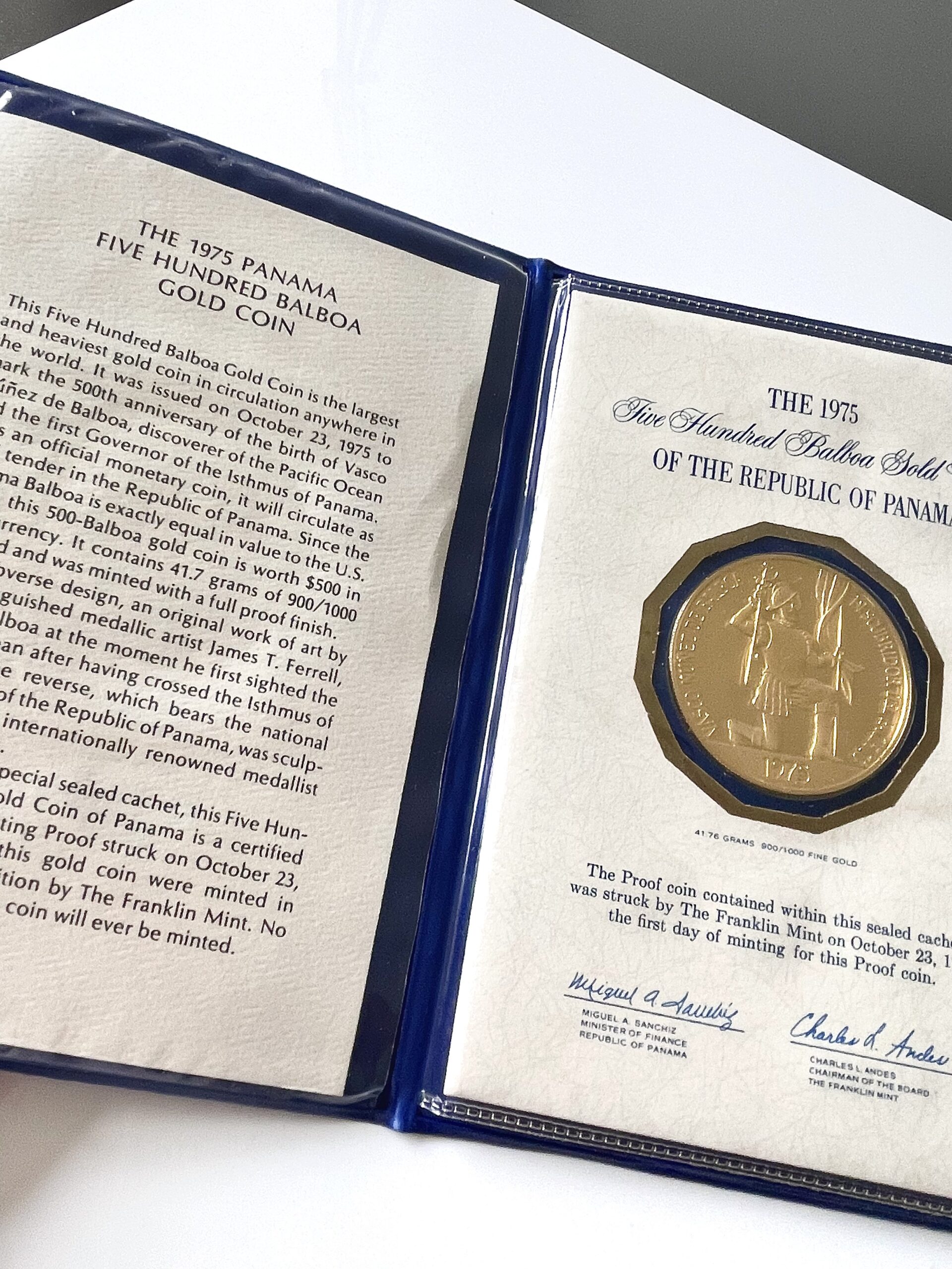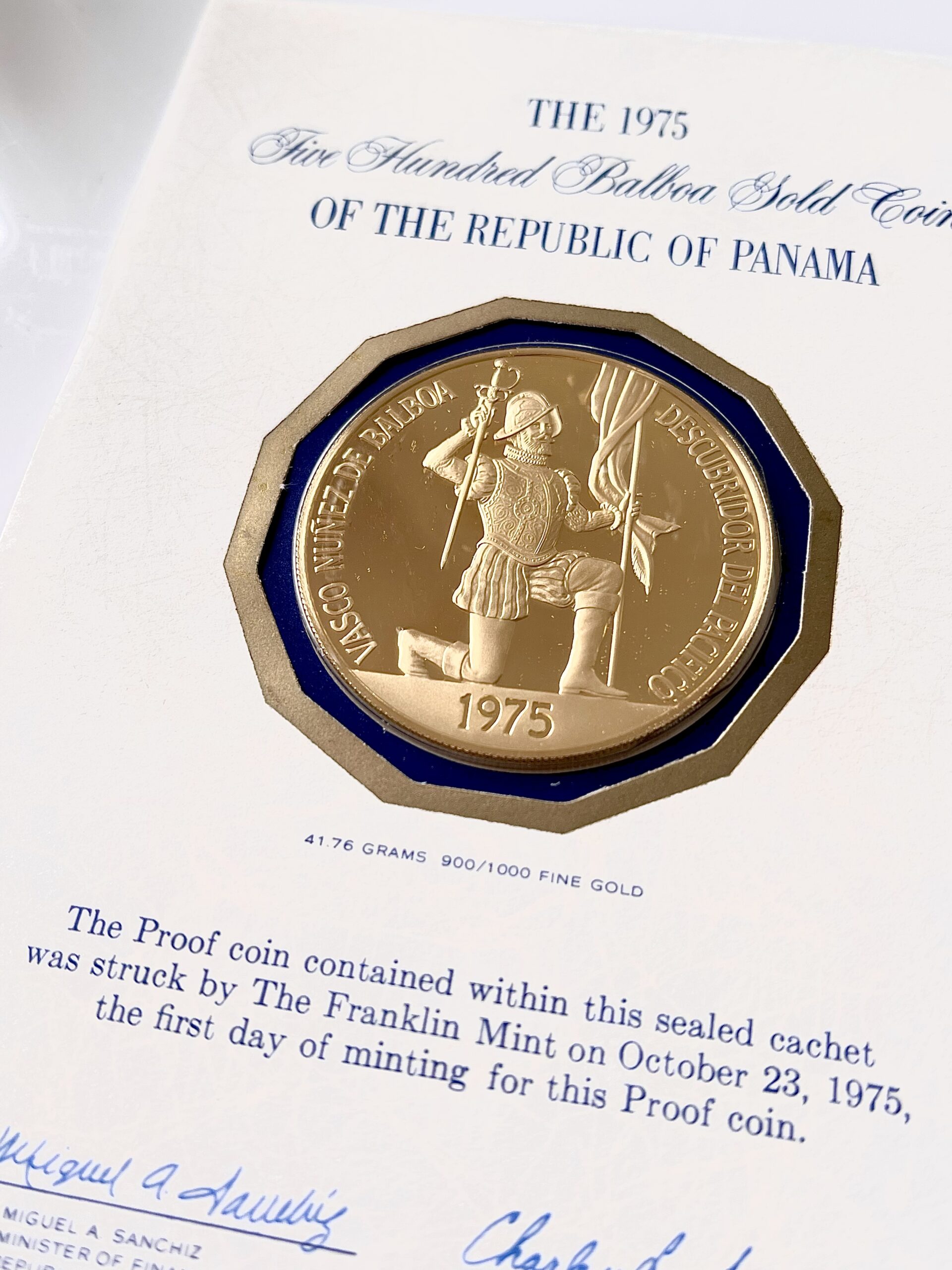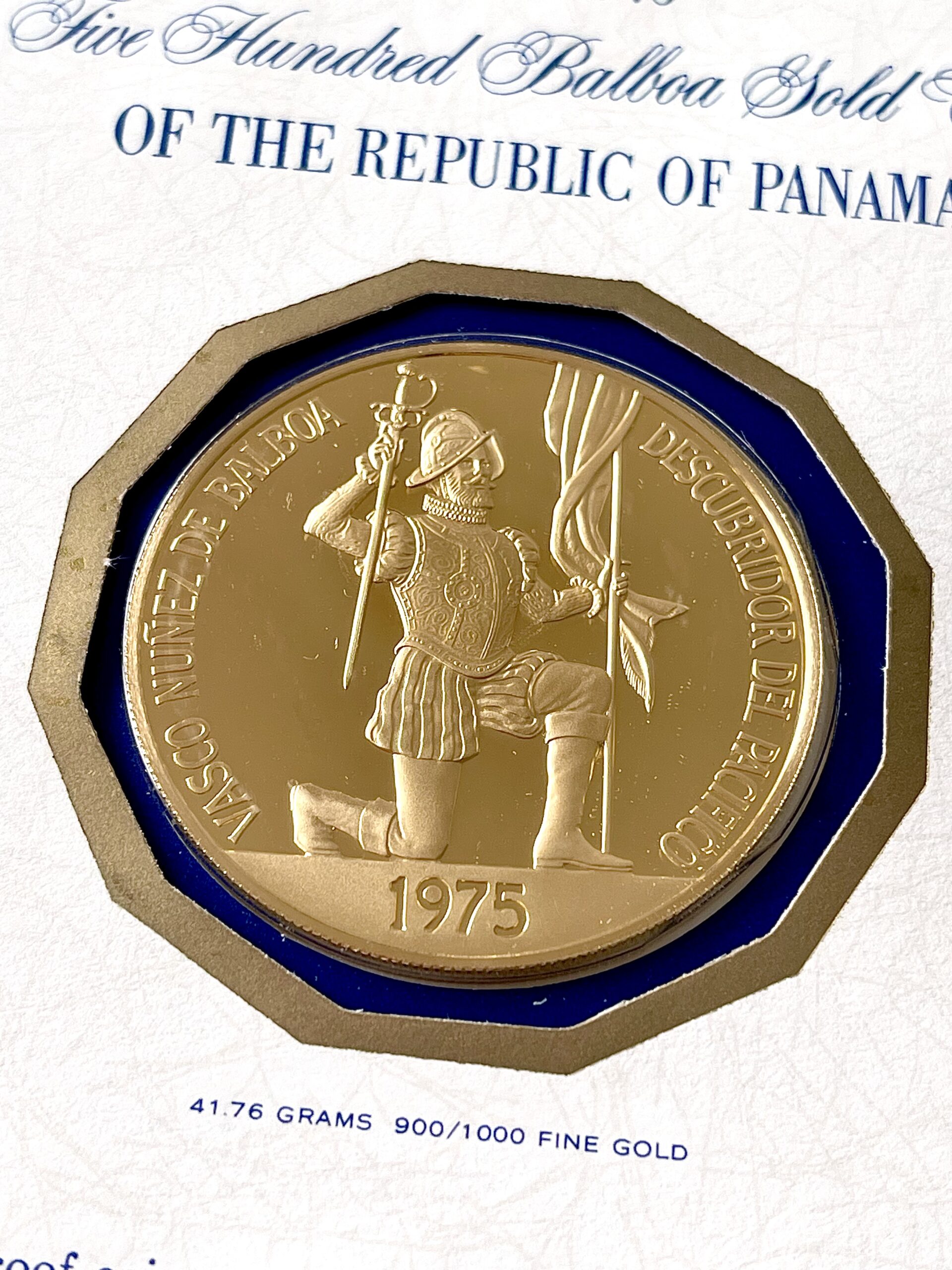 Panamá – 1975 – 500 Balboas – Nacimiento de Balboa – Gold Proof – Primer Día de Acuñación – con estuche y COA