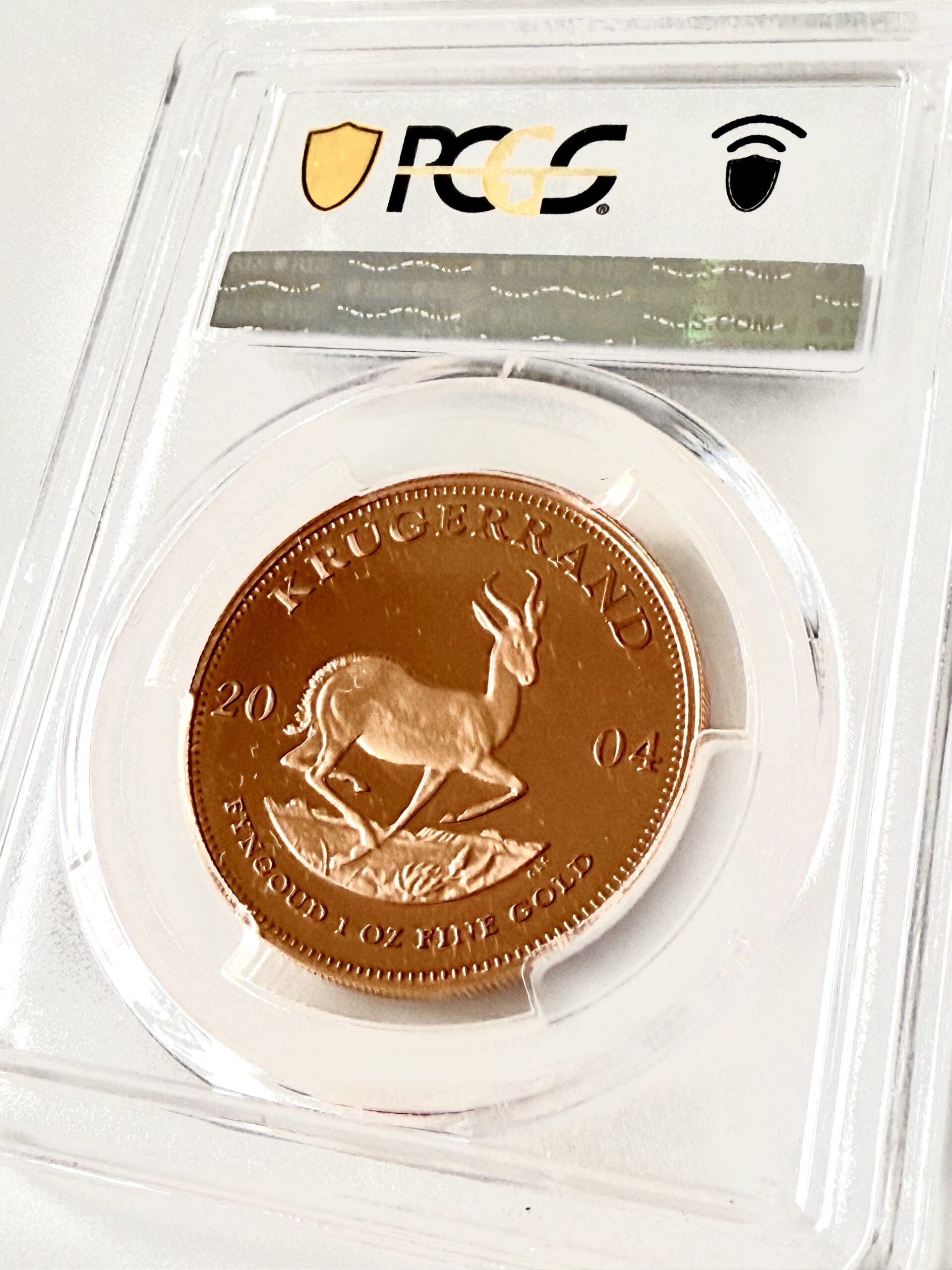 Il s’agit de la pièce d’or Krugerrand de 1 oz de 2004 en qualité de frappe épreuve. Le tirage maximal pour cette année a été de 3492 exemplaires.