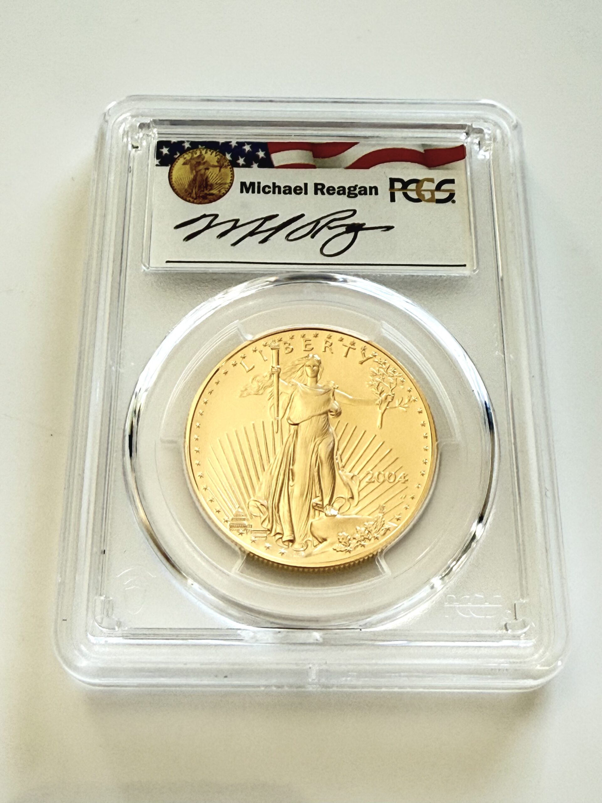 Série Reagan Legacy : Étiquette spéciale PCGS avec la signature originale de Michael Reagan en l’honneur du président Ronald Reagan.