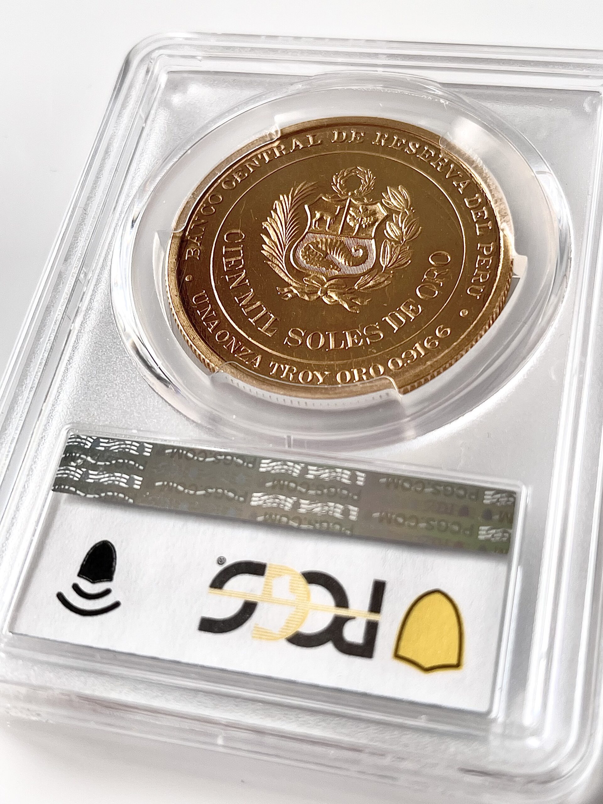 Il s’agit de la pièce d’or de 100 000 soles du Pérou avec le portrait de Miguel Grau.