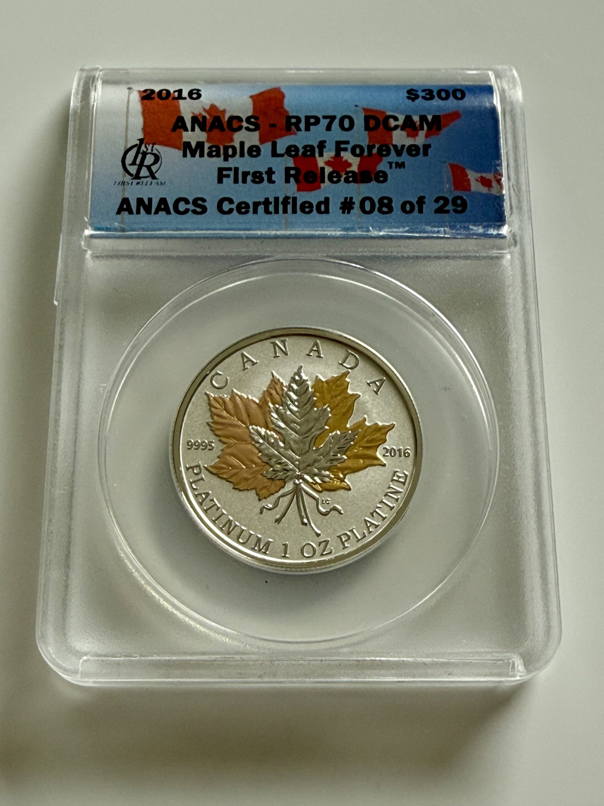 Canada – 2016 – Maple Leaf Forever – 1 oz Platino – $ 300 – Reverse Proof – ANACS RP70 DCAM Prima uscita