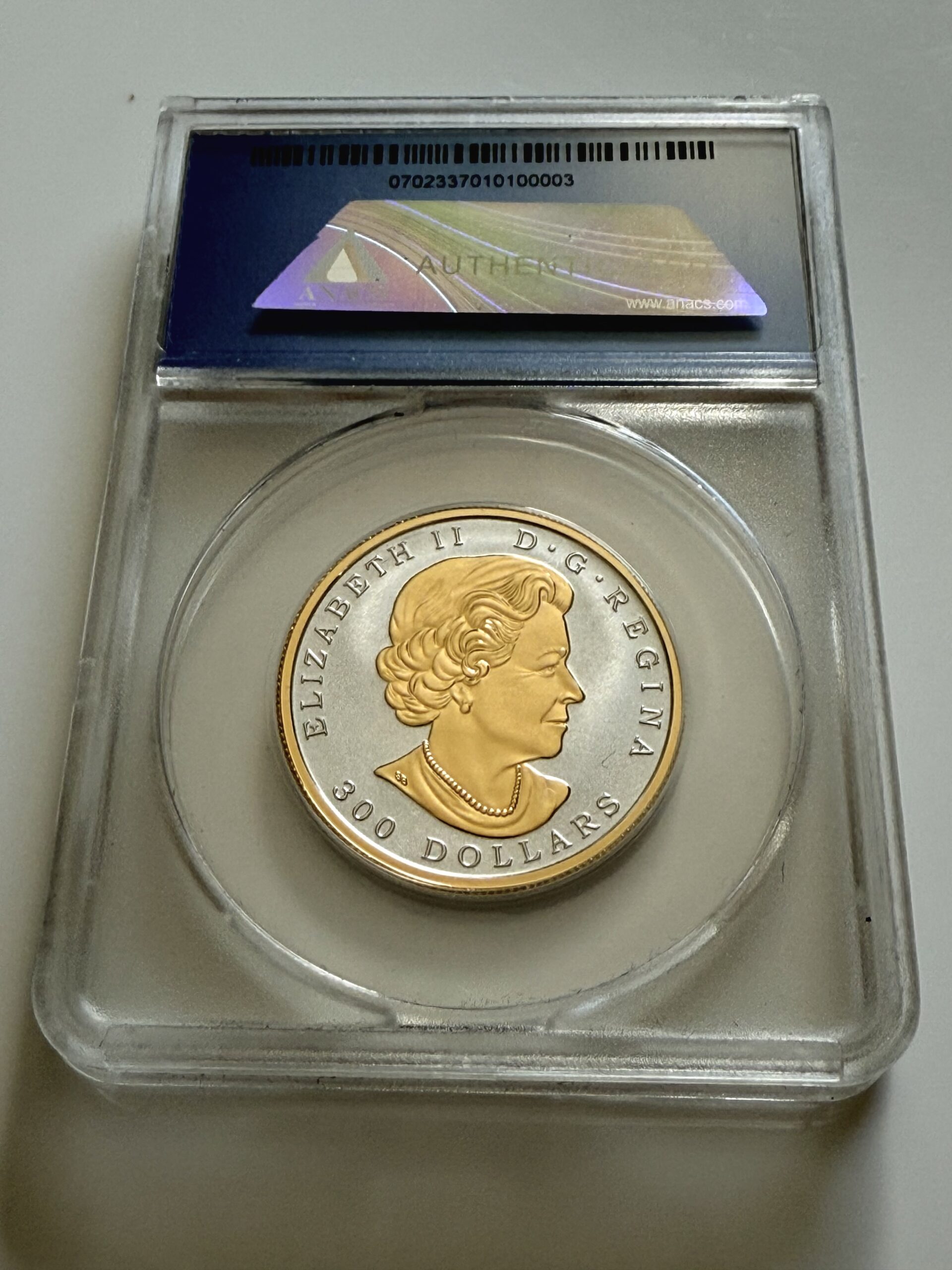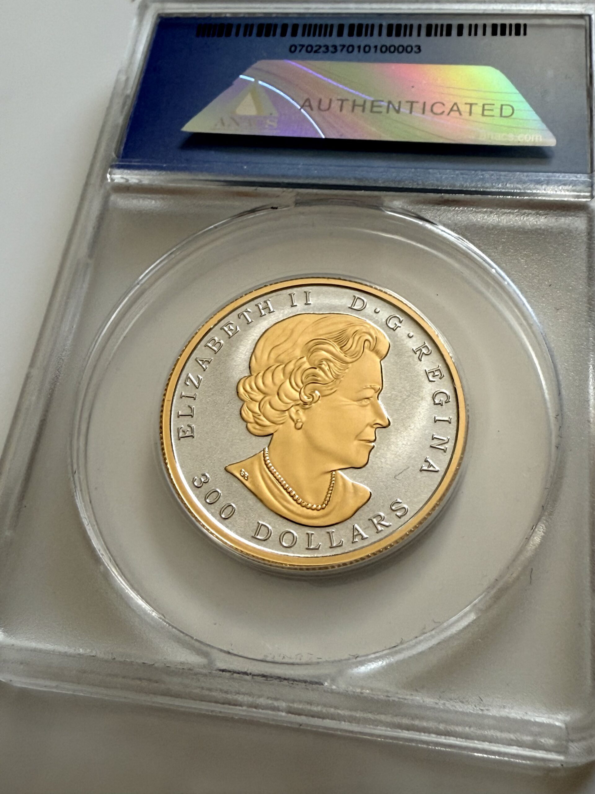 Particolarmente esclusivo: questo pezzo è stato classificato dall’ANACS con il grado più alto RP70 DCAM e reca l’eccezionale certificato numero #3 di soli 19 esemplari esaminati in tutto il mondo in queste condizioni eccellenti. L’iconico motivo della foglia d’acero simboleggia il Canada ed è messo in risalto con maestria attraverso la goffratura a prova di inversione ad alto contrasto.