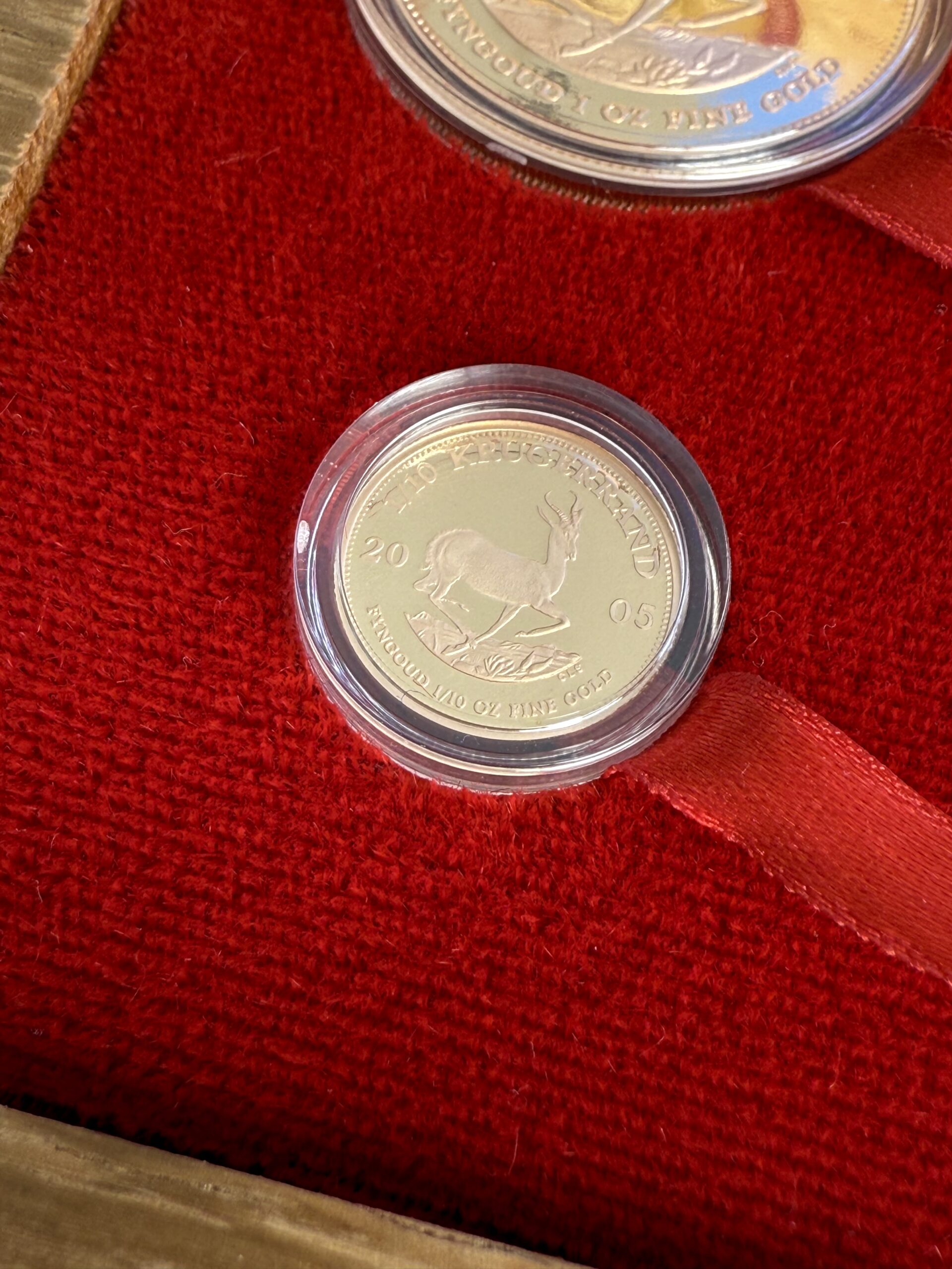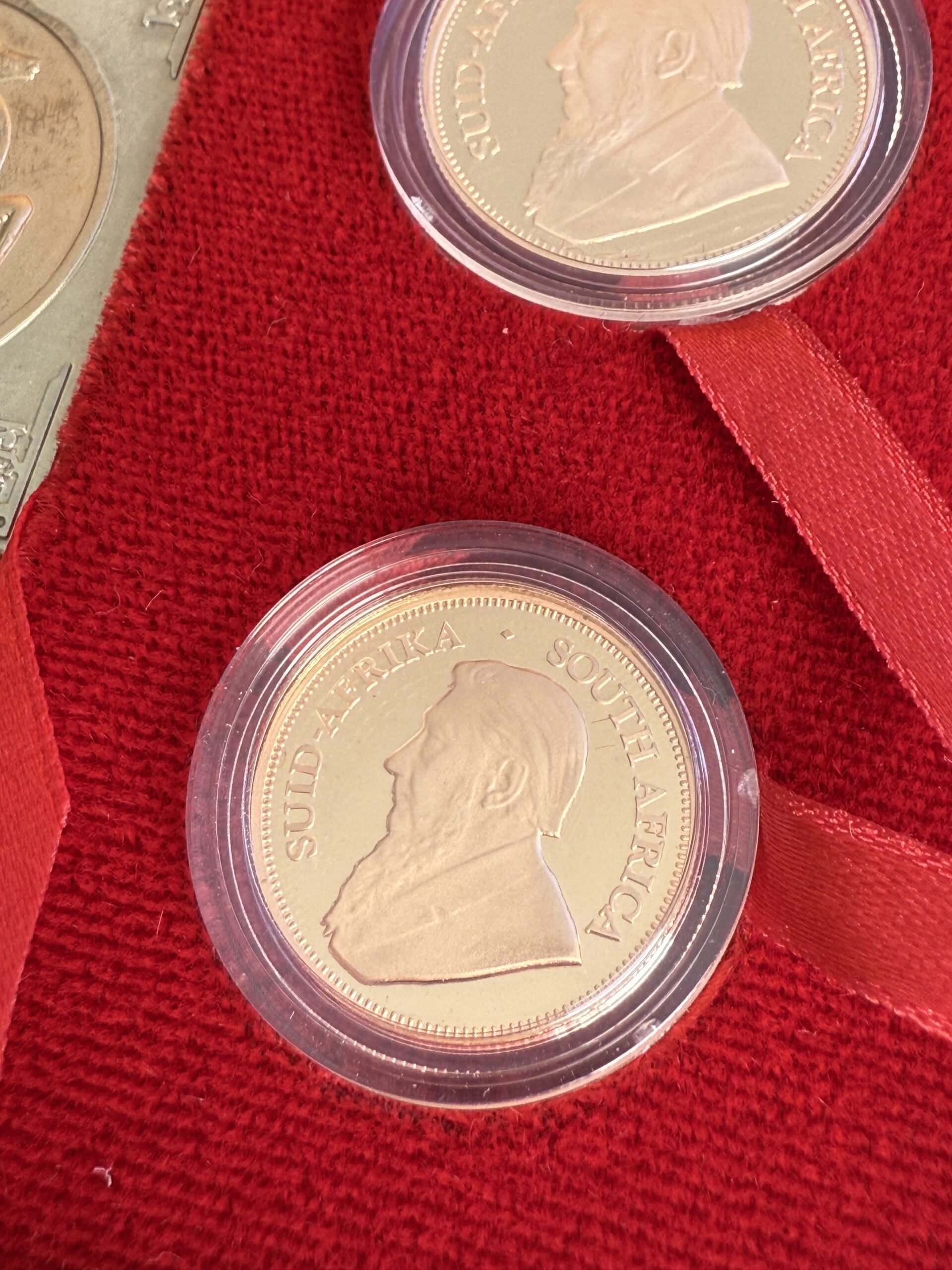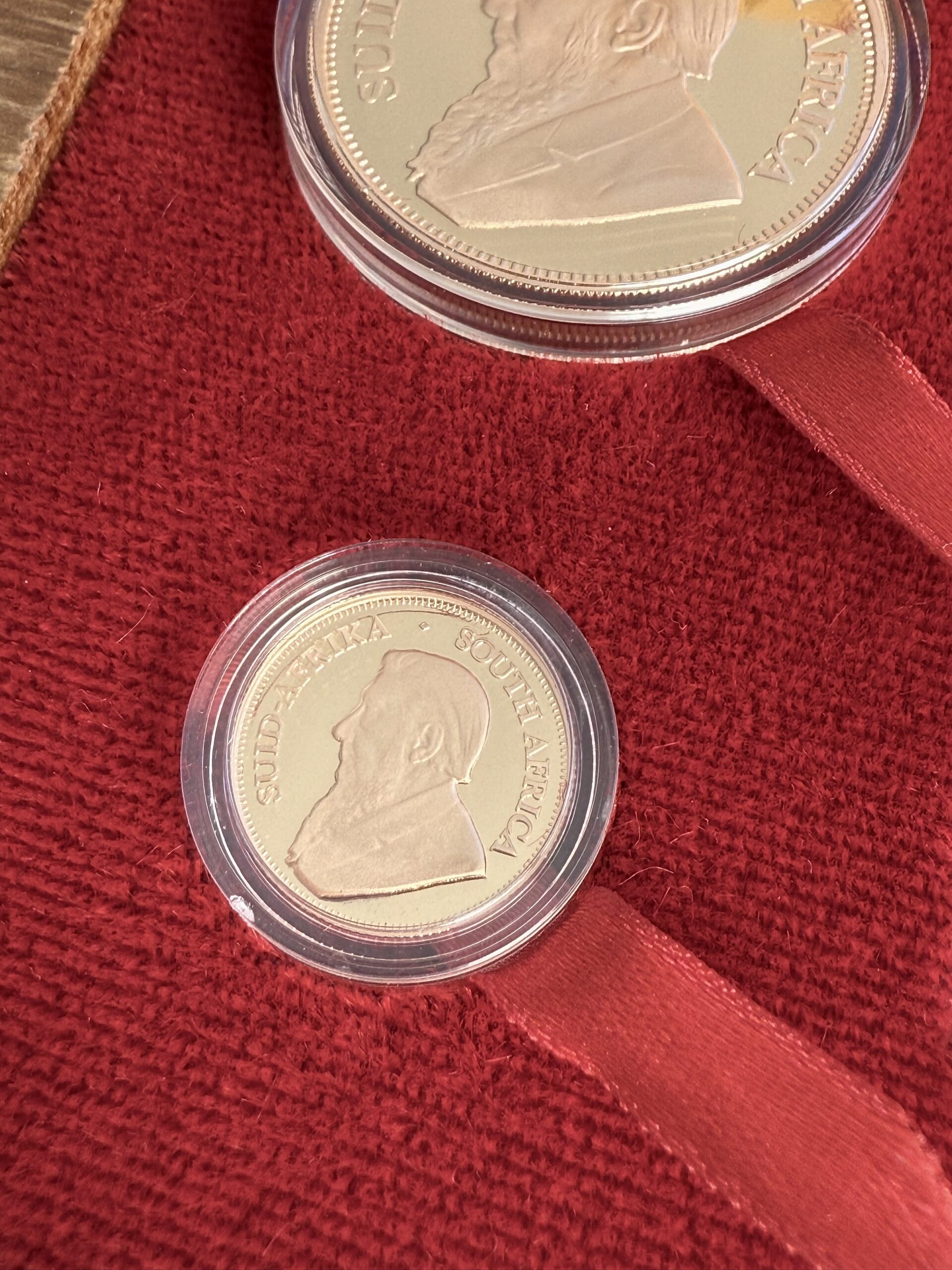Le monete presentano campi riflettenti, dettagli raffinati e una ricca lucentezza dorata, un esempio eccellente dell “abilità coniatrice sudafricana. Ogni moneta reca l” iconico motivo dello springbok e il ritratto di Paul Kruger, simbolo della lunga tradizione del Krugerrand, divenuto famoso in tutto il mondo come la prima moneta moderna in metallo prezioso.