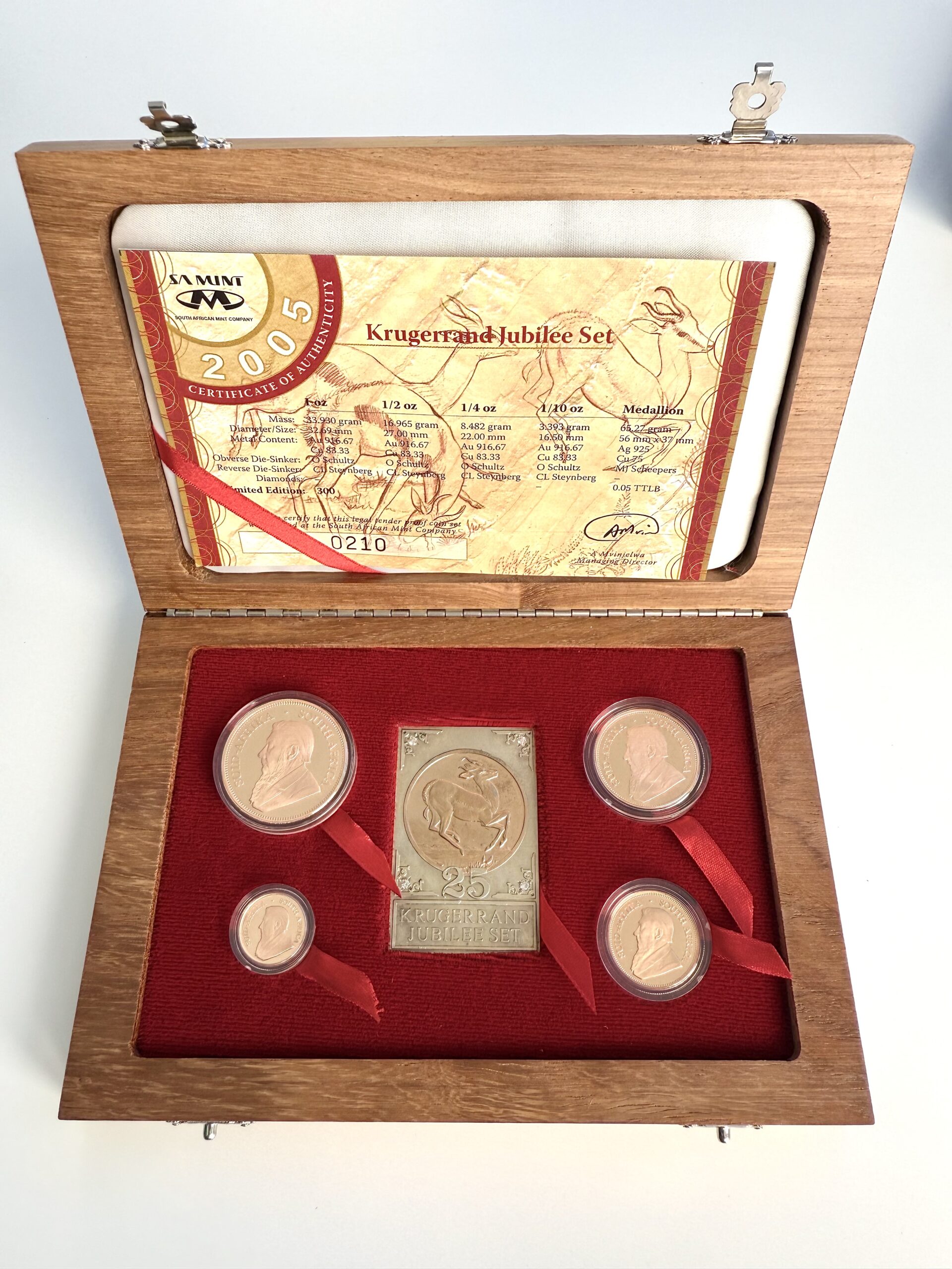 Sud Africa – 2005 – Krugerrand – Jubilee Prestige Set – 25 anni – Oro 1,85 oz – Proof