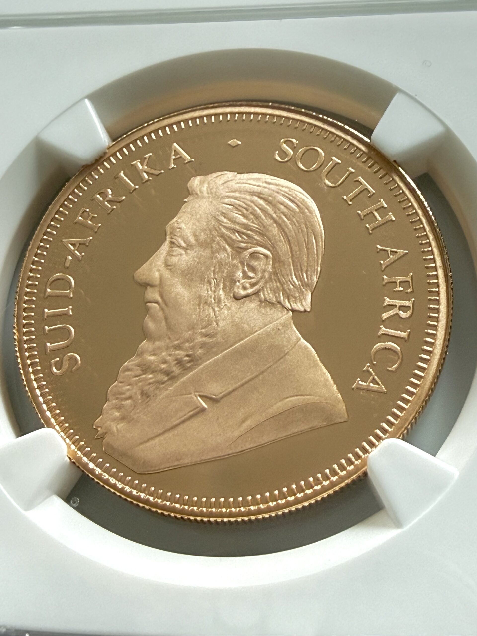 Il rovescio raffigura l’iconico springbok di Coert Steynberg, mentre il dritto mostra il ritratto storico di Paul Kruger. Questa emissione unisce così la numismatica sudafricana classica alla massima qualità di prova e all’eccezionale rarità nella classifica di certificazione.