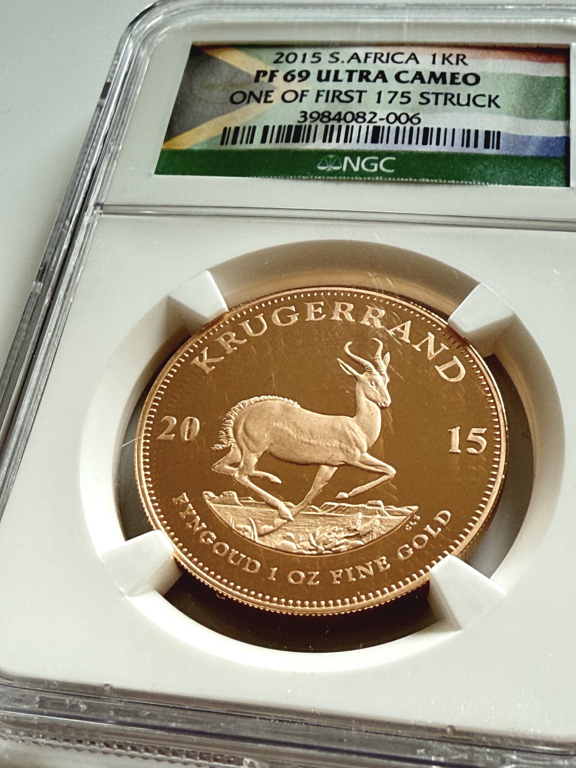 Sud Africa – Krugerrand – 2015 – Una delle prime 175 monete coniate – Oro da 1 oz – Proof – NGC PF69UCAM