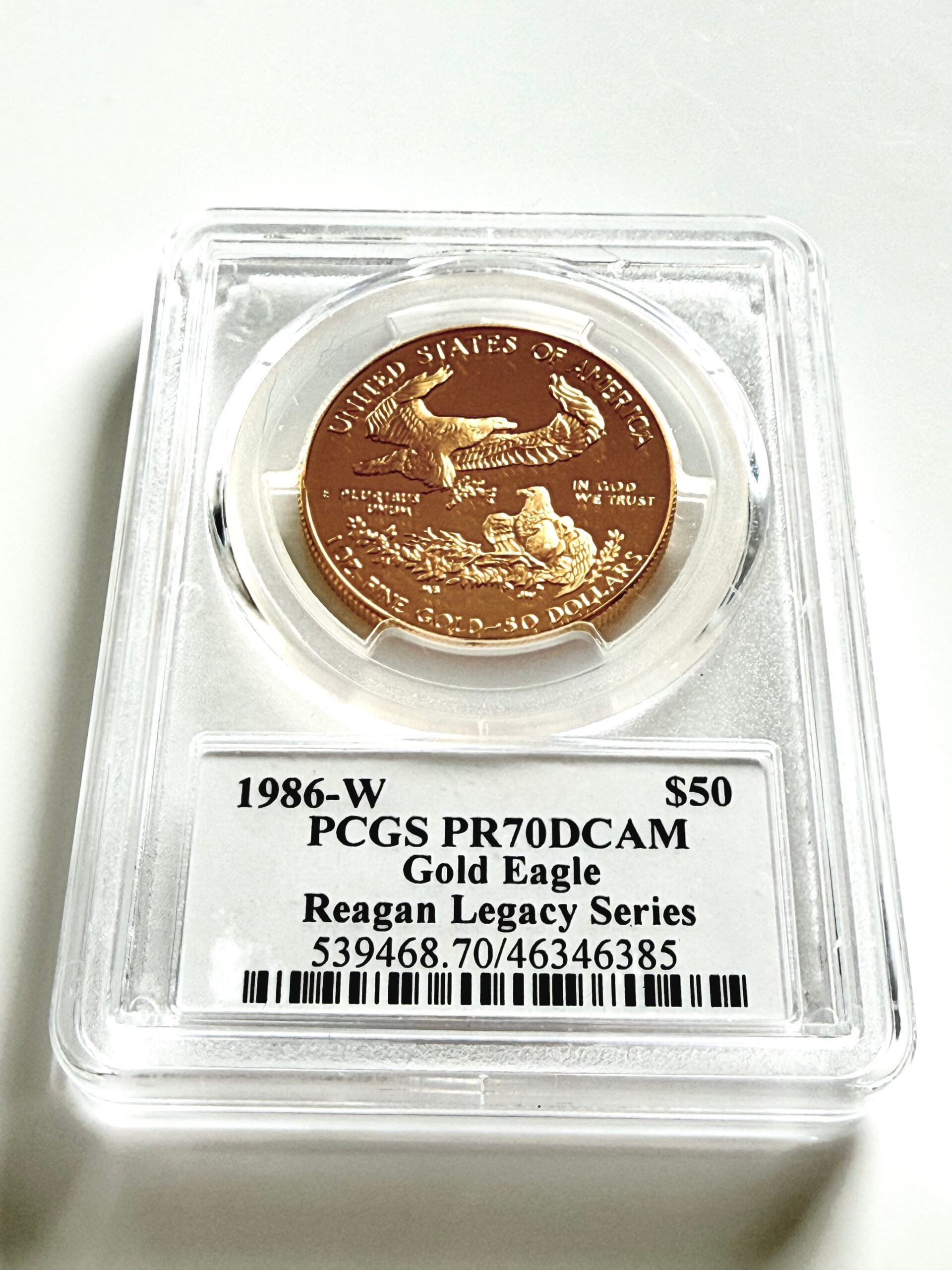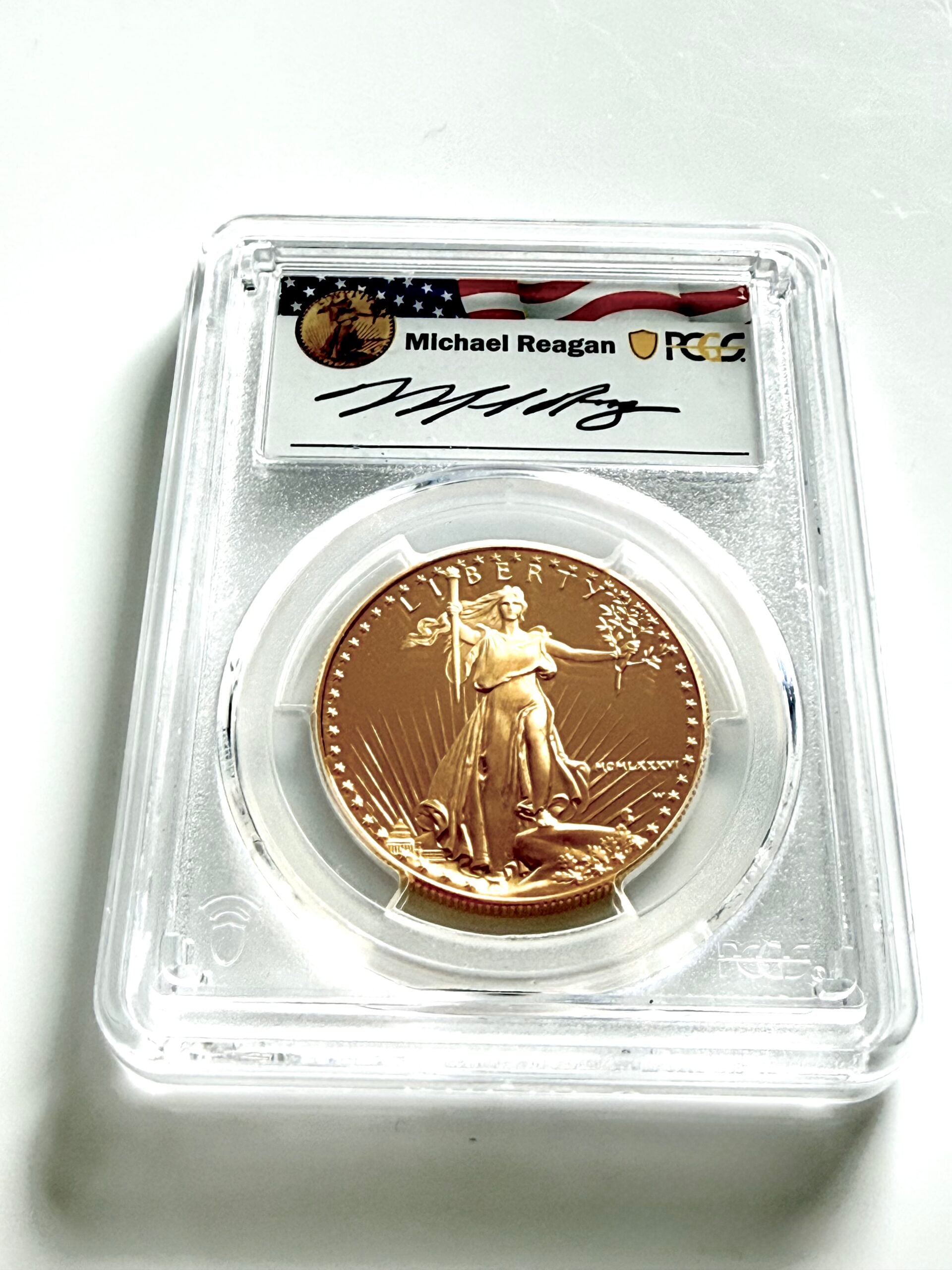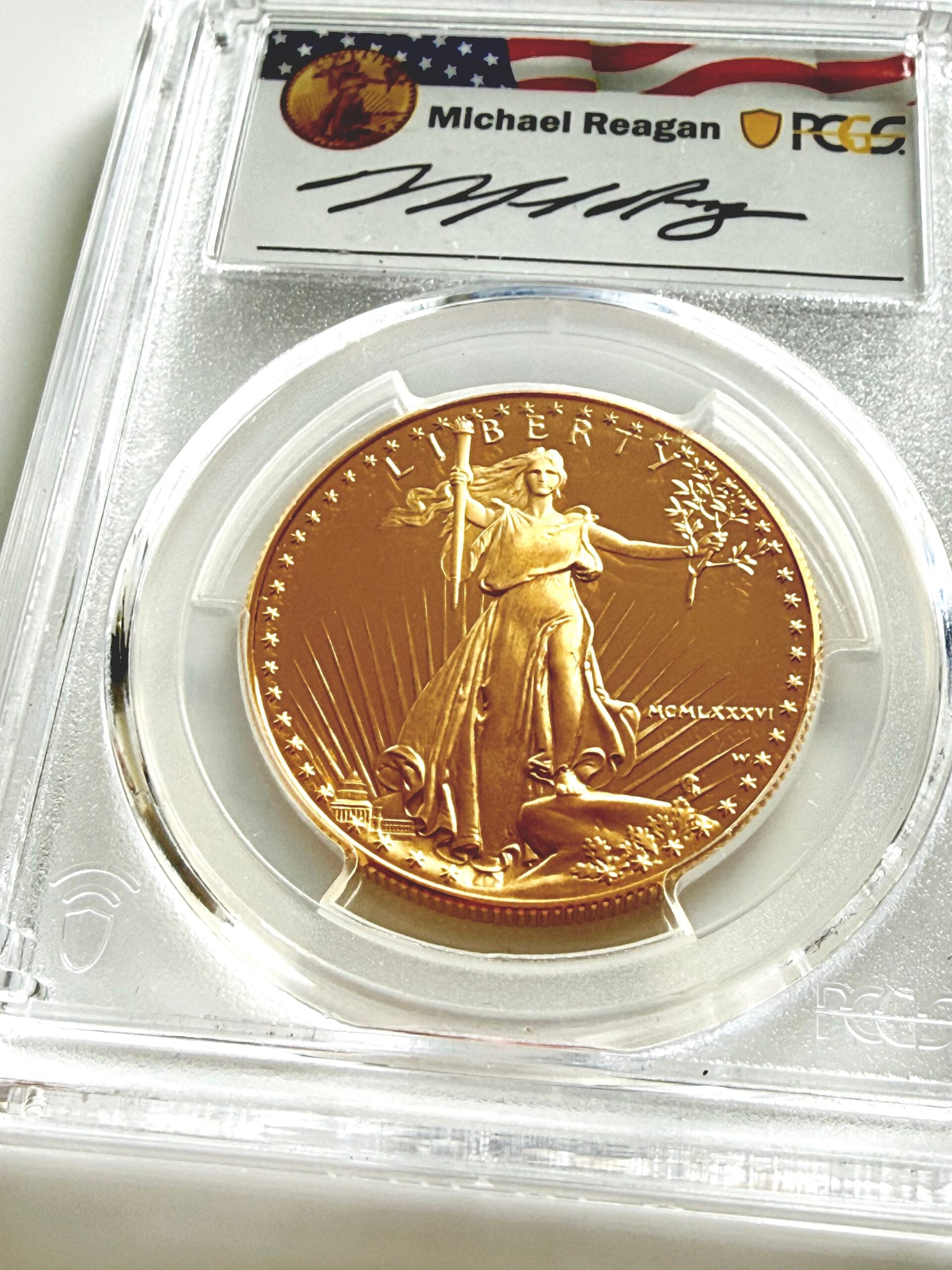 USA – 1986 – 50 dollari – American Gold Eagle – Reagan Legacy Series – Oro – Proof – PCGS PR70DCAM – Etichetta firmata da Michael Reagan