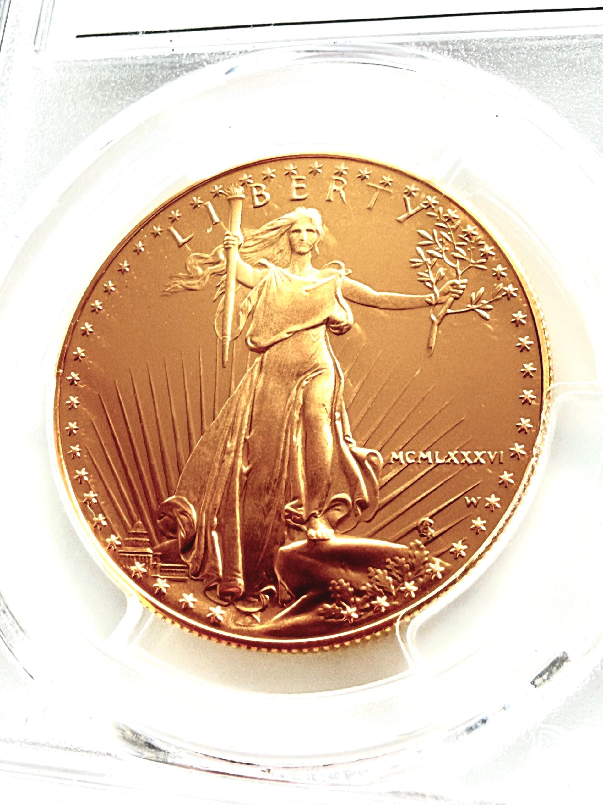 Questa moneta American Gold Eagle Proof del 1986 appartiene all’anno di debutto della serie Proof ed è un classico della numismatica statunitense moderna . Inoltre, l’emissione presenta l’iconico disegno della “Libertà” di Saint Gaudens, considerato da decenni una delle più belle allegorie sulle monete d’oro statunitensi.