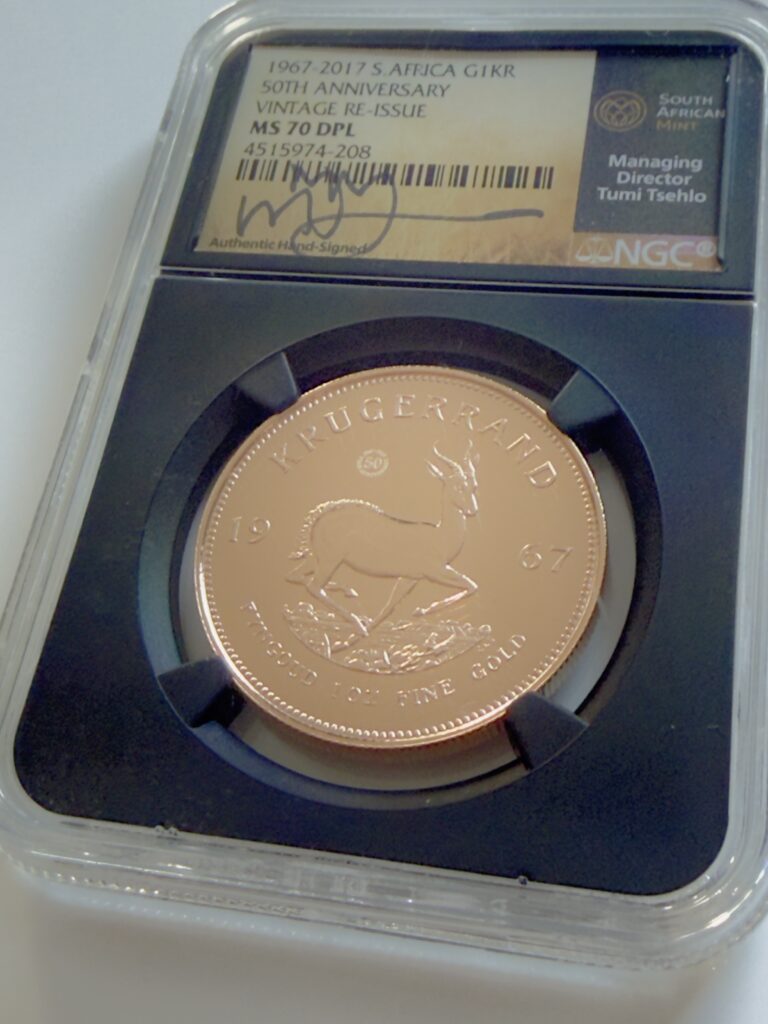 Krugerrand – Vintage 1967 – 50° anniversario – Oro 1 oncia – NGC MS70 Deep Prooflike