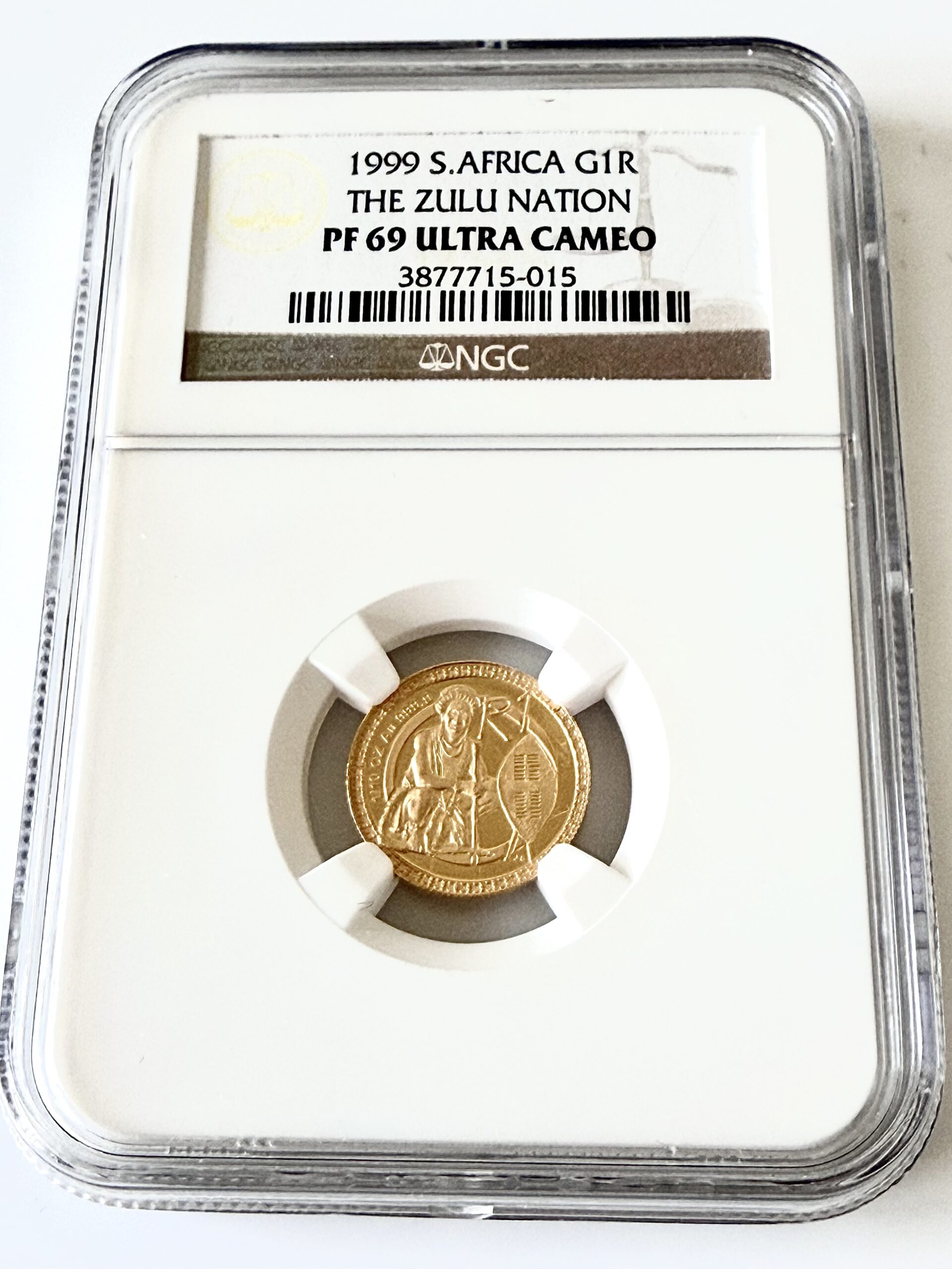 Южная Африка — 1999 — 1 ранд — The Zulu Nation — Золотая монета в качестве пруфа — NGC PF69 UCAM