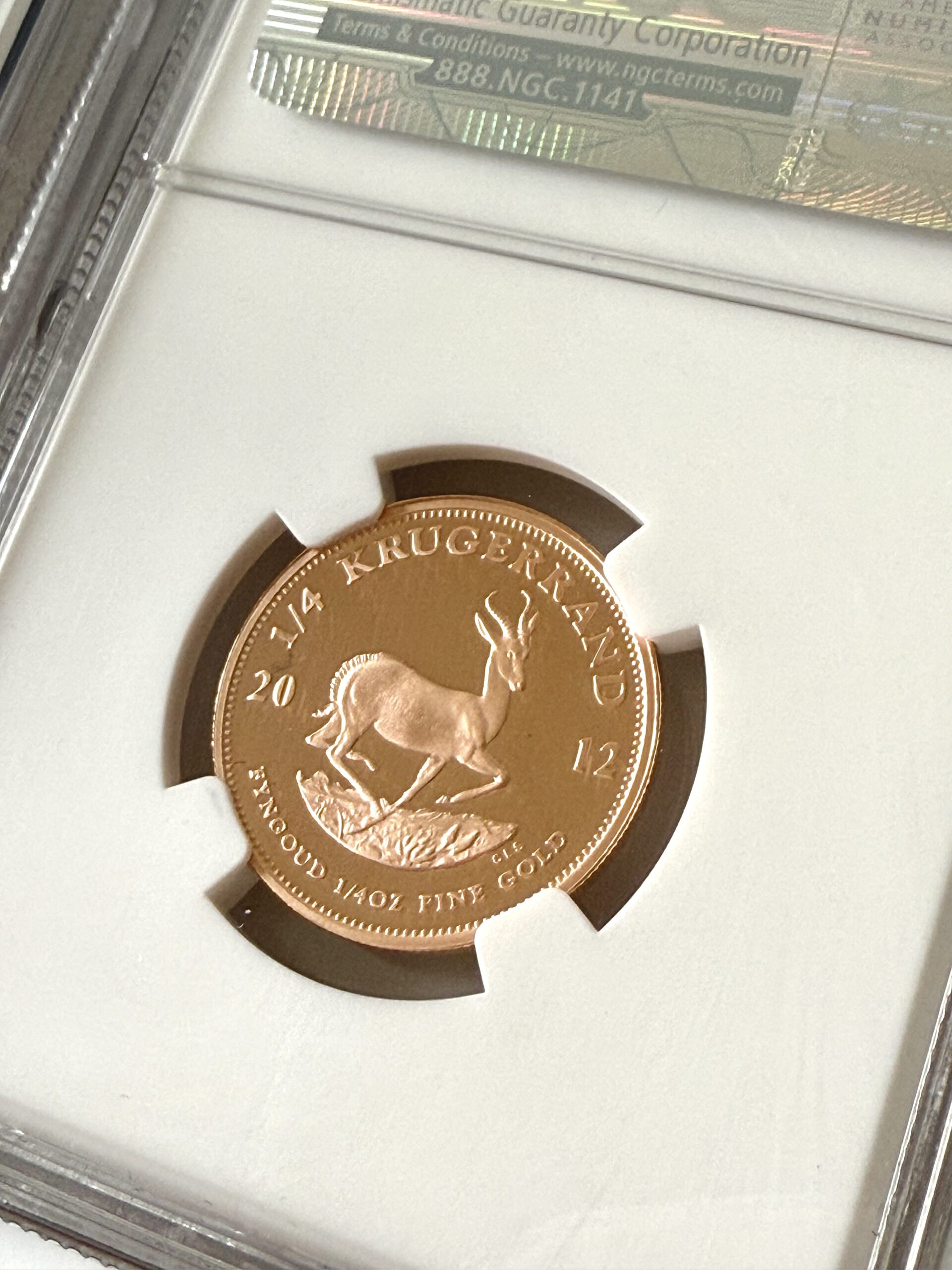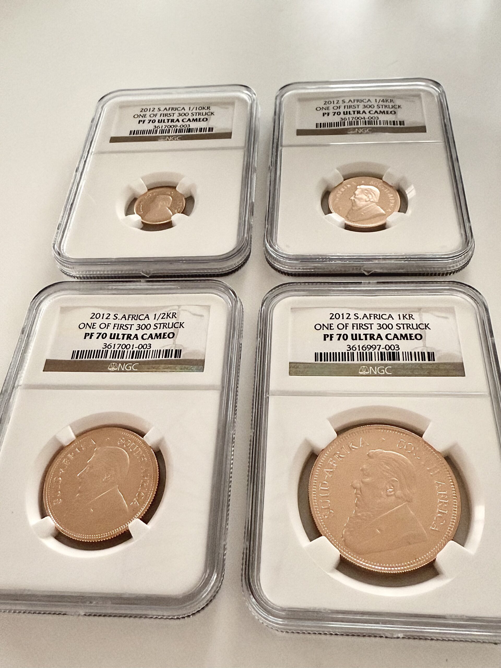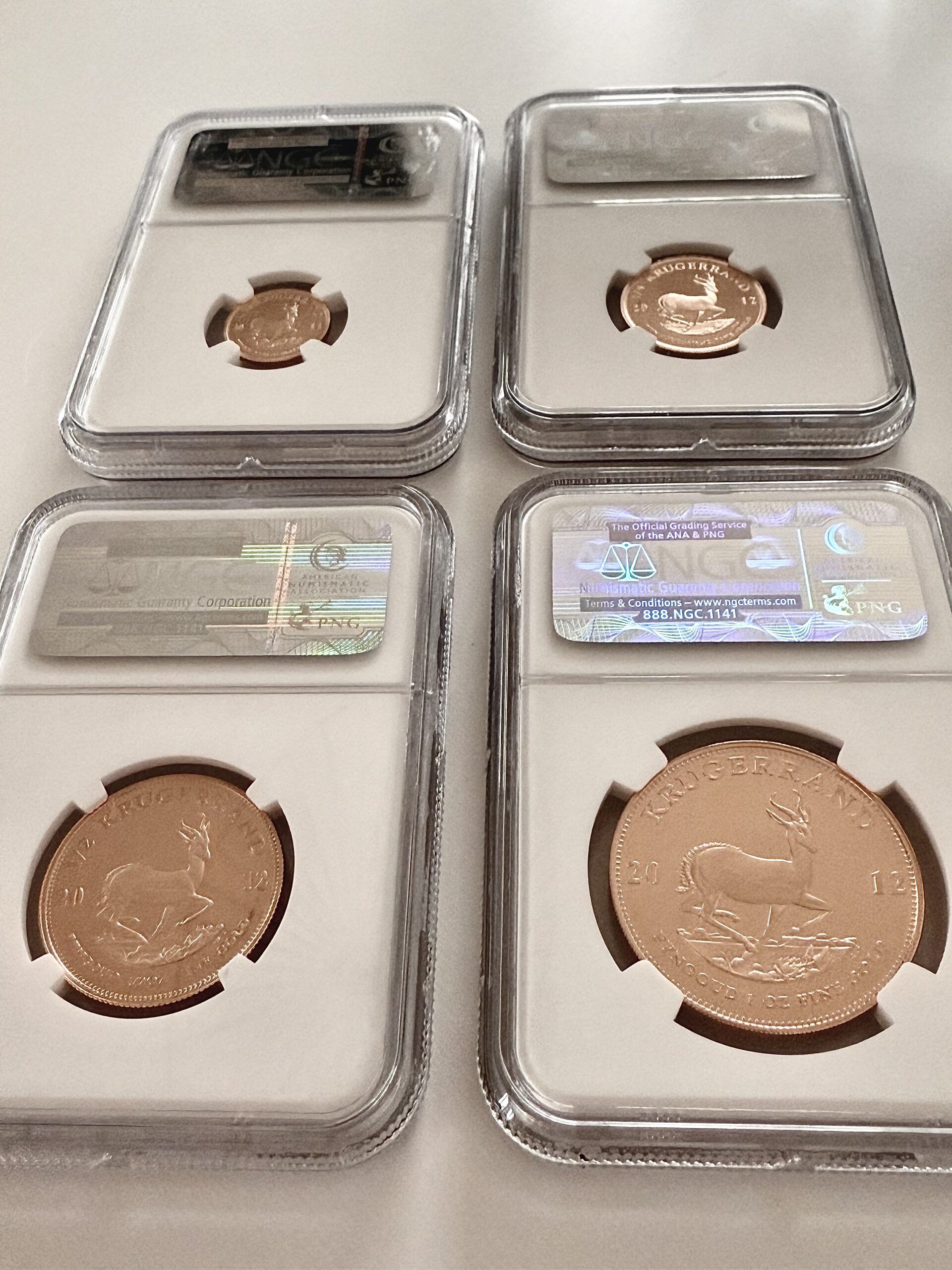 这是 2012 年铸造的 Krugerrand 精制品质。 这套共包含4枚硬币。